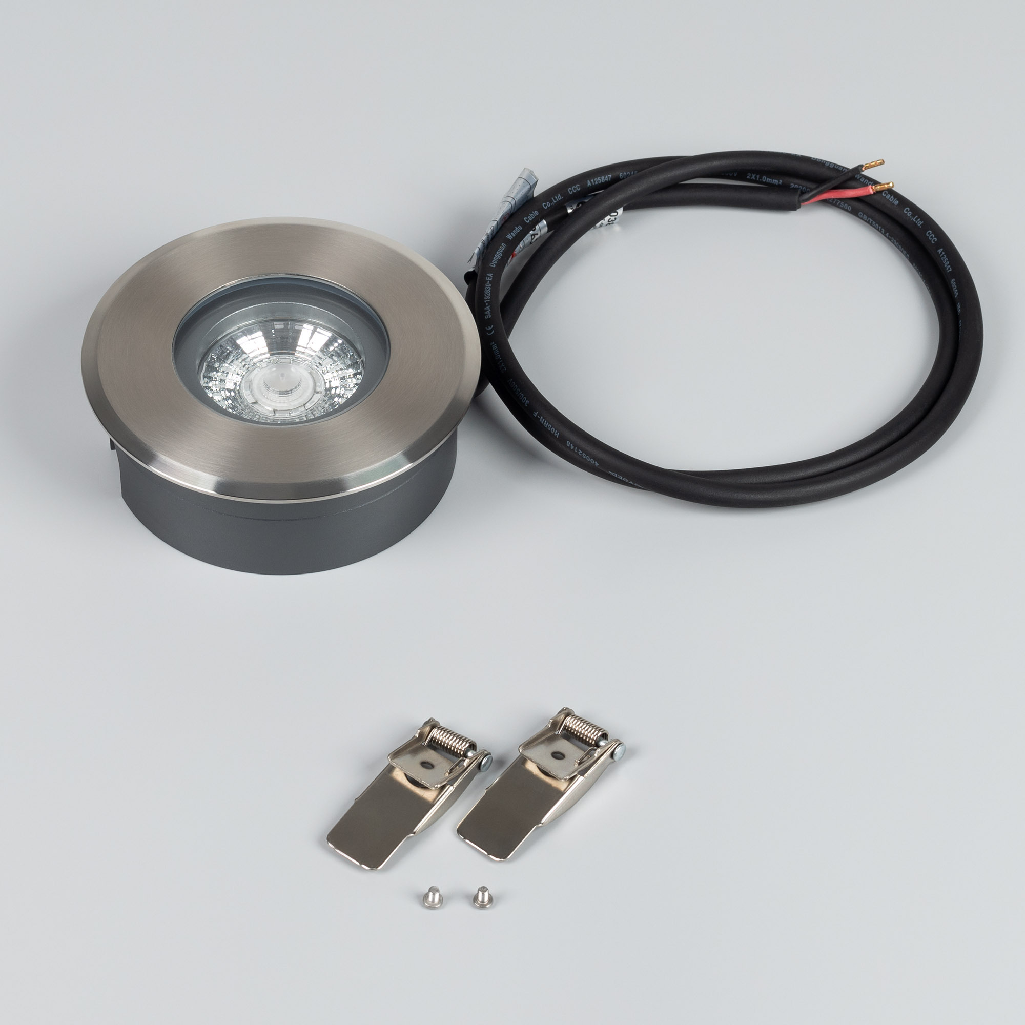 Встраиваемый светодиодный светильник для грунта и пола. Мощность 6Вт, угол освещения 35°, световой поток 400лм, цвет ТЕПЛЫЙ 3000К, CRI(Ra)>80. Круглый влагозащищенный корпус IP67, внешняя рамка из нержавеющей стали AISI 316. Экран закалённое стекло. Питание 24V, 6Вт. Размер Ø110x38мм. Установка в отверстие Ø98x35мм. ВНИМАНИЕ! Светильник не поддерживает регулирование светового потока ШИМ. Комплект установки в грунт/пол в комплекте, комплект установки для встройки в потолок в комплекте.