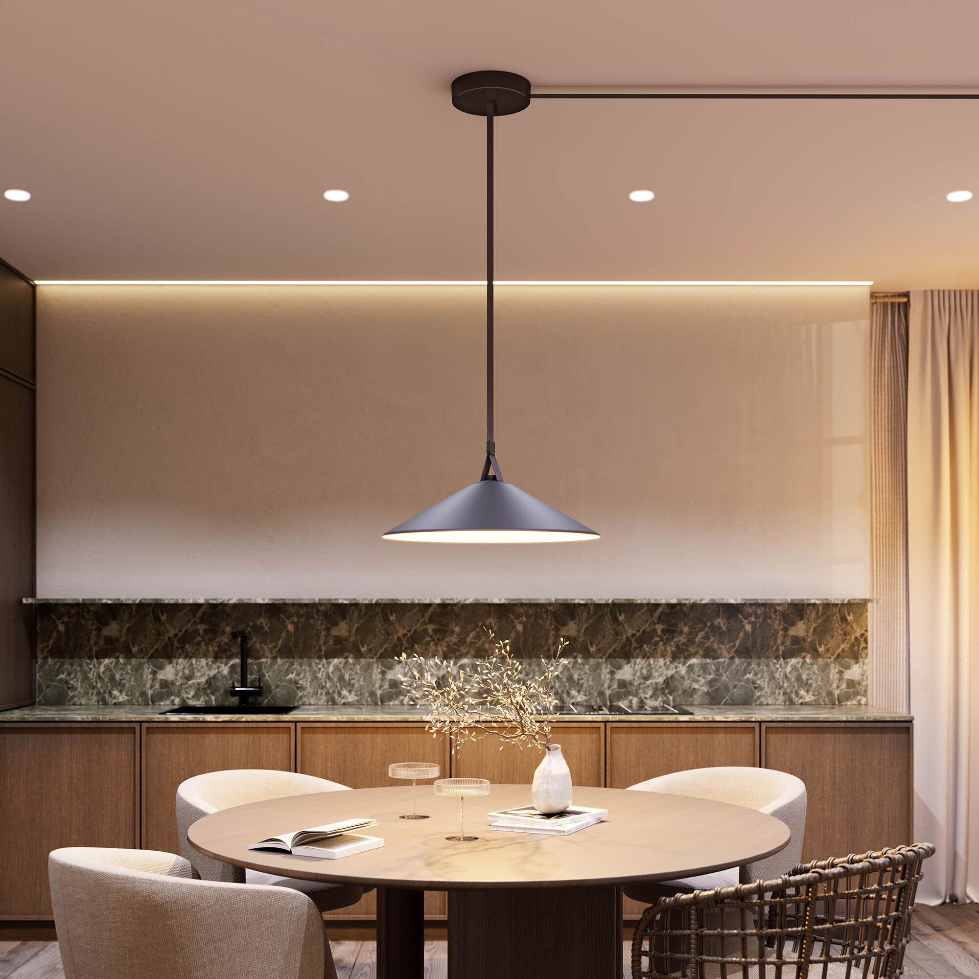Светильник ART-INBELT-WOK-R580. Мощность 20 Вт, св. поток 929 лм, 46 лм/Вт, изменяемая цветовая температура 2700-6500 К, CRI>92, угол 110°, напряжение питания 48 В. Cтепень защиты IP20. Размер: Ø580 x 160 мм. Монтаж на токопроводящий ремень INBELT. Цвет корпуса черный. Протокол управления DALI.
