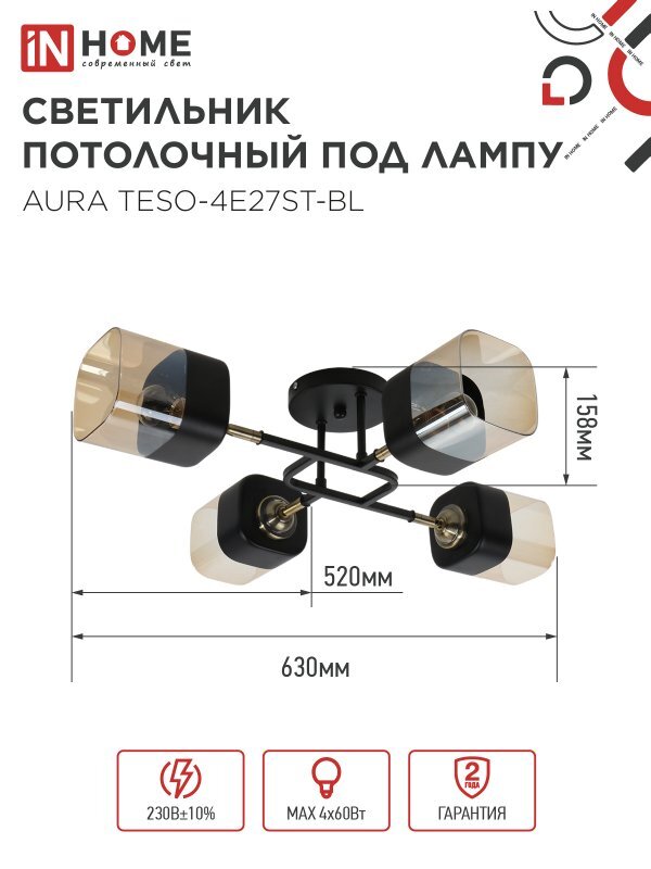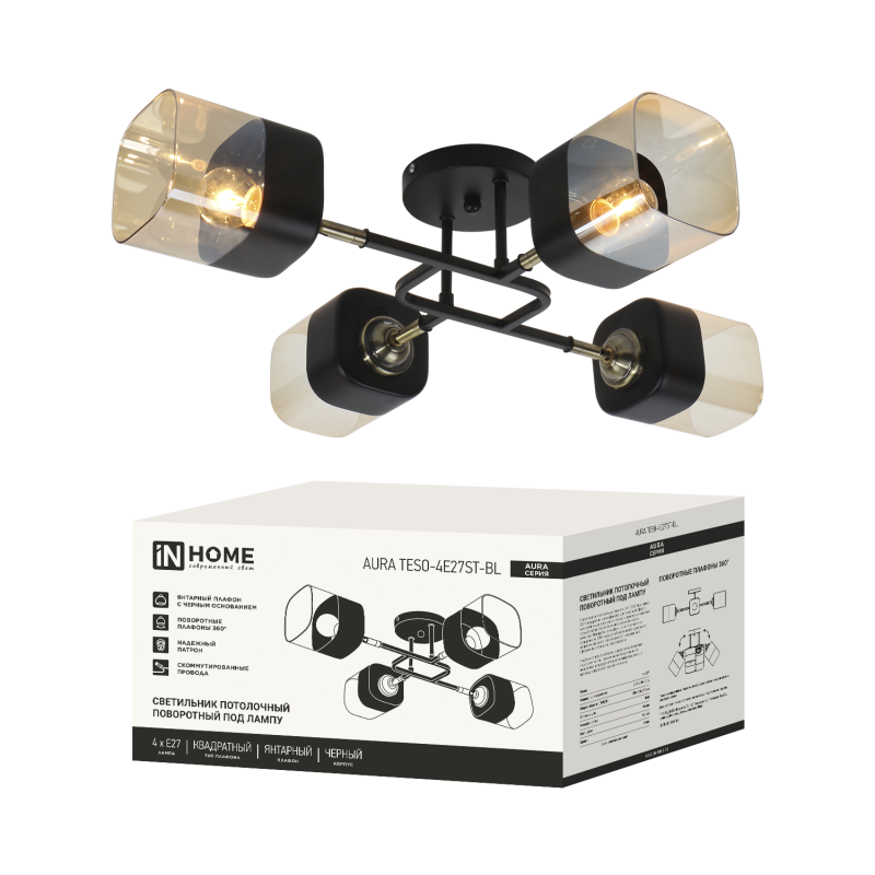 Светильник AURA TESO-4E27ST-BL 4хE27потолочн. поворотн.; плафоны янтарные/корпус черн. IN HOME 4690612063553