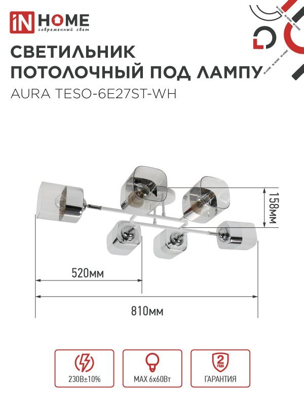 Светильник AURA TESO-6E27ST-WH 6хE27потолочн. поворотн.; плафоны прозр./корпус бел. IN HOME 4690612063584
