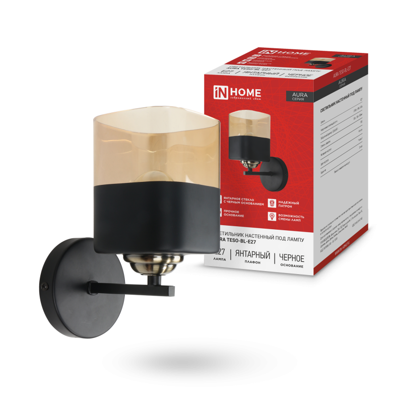 Светильник AURA TESO-BL-E27 100х150х180 настен. под лампу черн. IN HOME 4690612058054