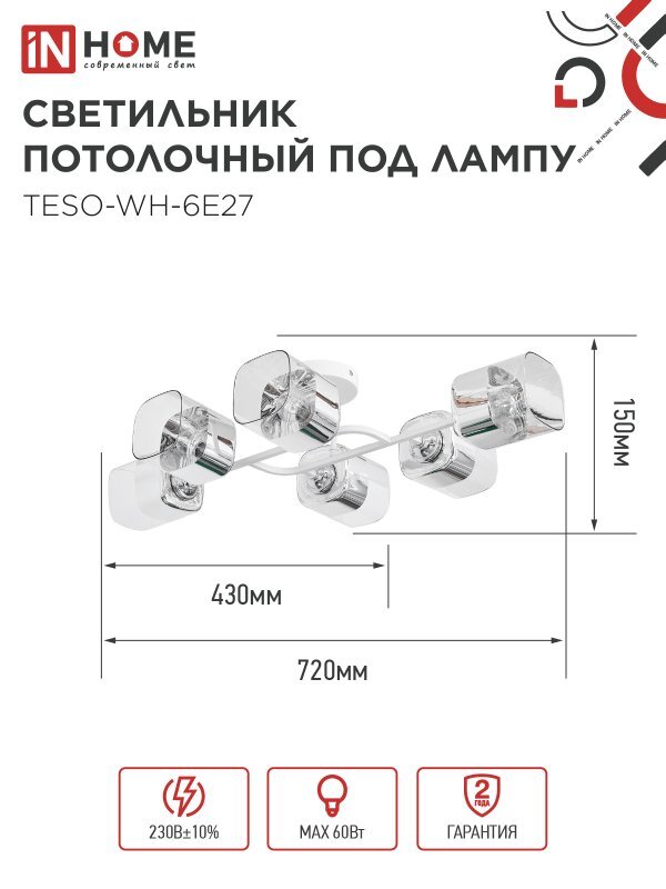 Светильник AURA TESO-WH-6E27 720х430х150 потолочн. под лампу бел. IN HOME 4690612058122