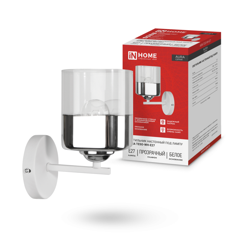 Светильник AURA TESO-WH-E27 100х150х180 настен. под лампу бел. IN HOME 4690612058061