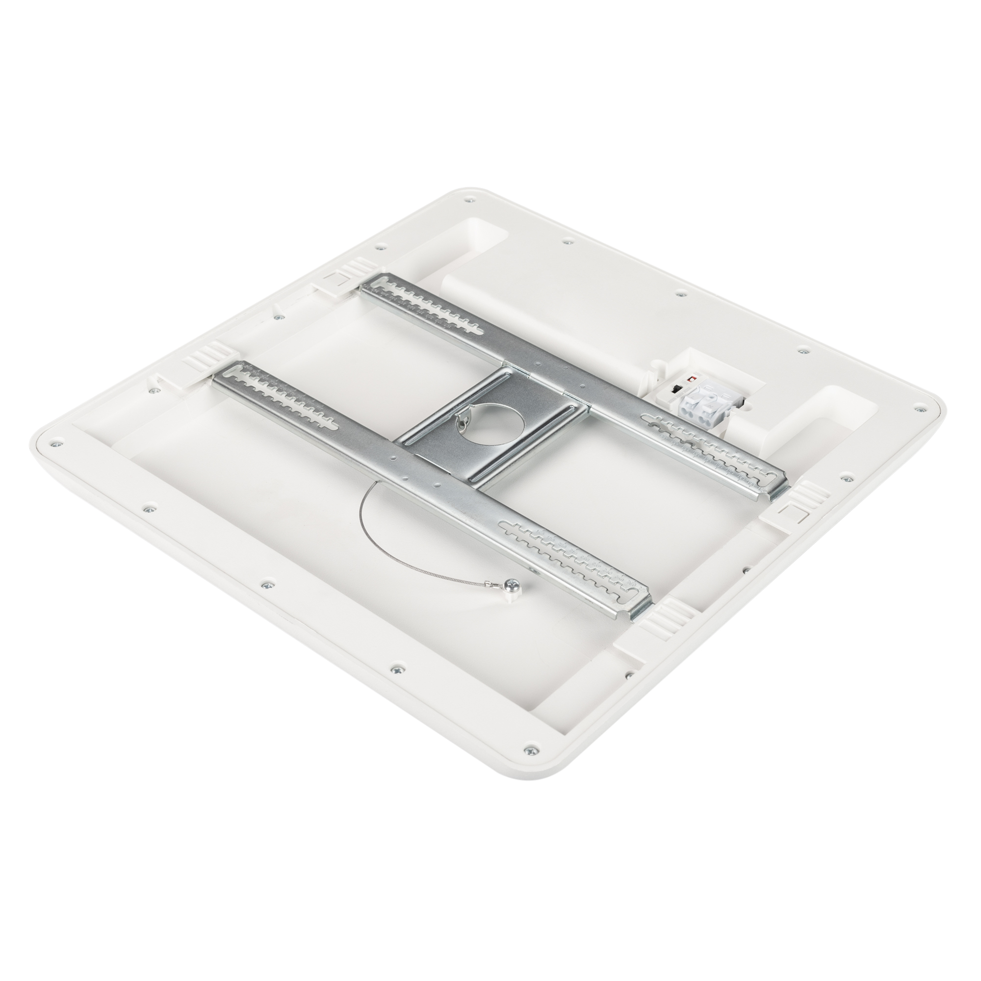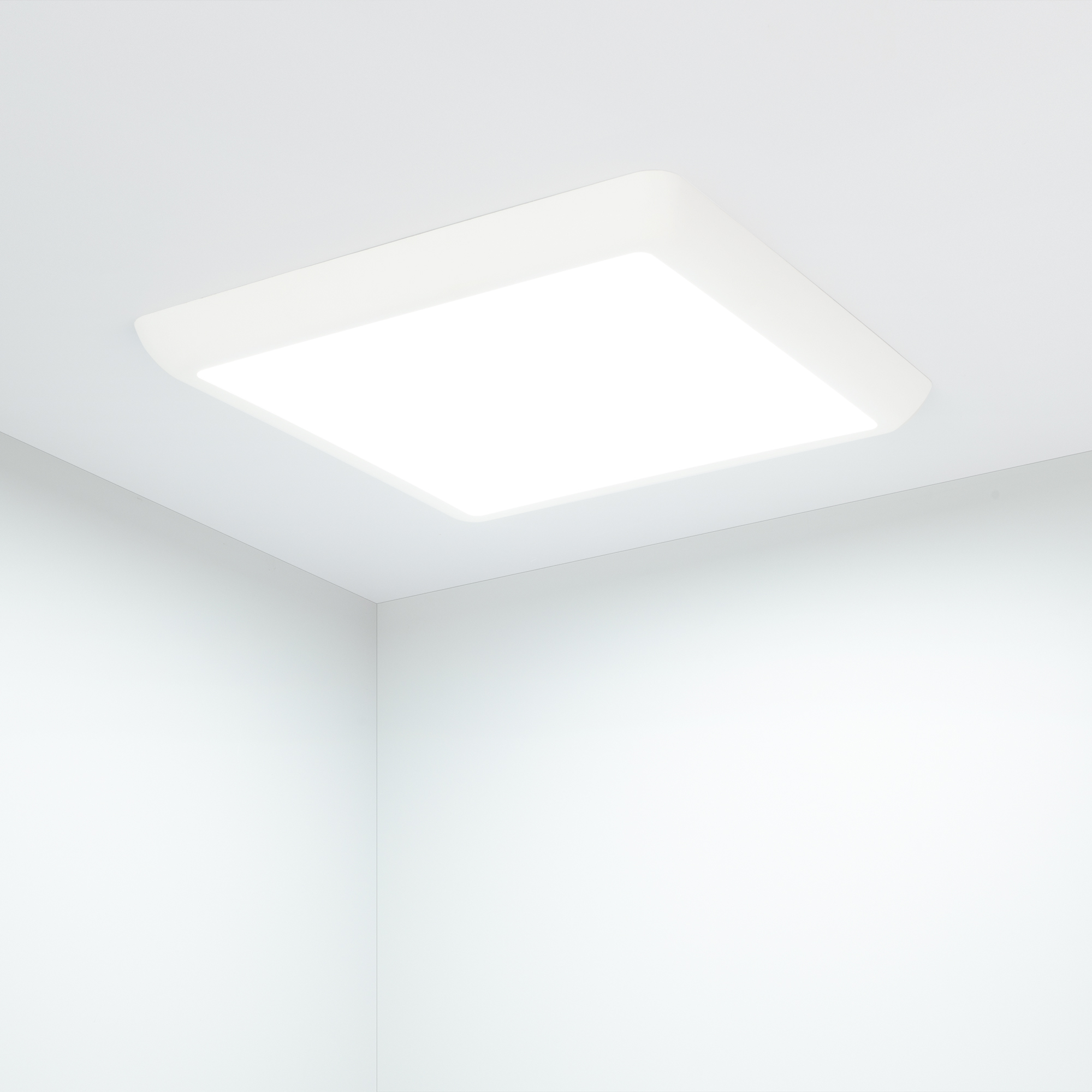 Накладной/встраиваемый светильник с изменяемой мощностью и цветовой температурой. Мощность 18-25 Вт, св. поток 1600-2300 лм, 75-90 лм/Вт, теплый 3000 K, дневной 4000K, белый 6000K, CRI>80, угол 120°, напряжение питания 230 В. Белый квадратный корпус из пластика, экран поликарбонат, степень защиты IP44. Размер: длина 300 мм, ширина 300 мм, высота 25 мм. Монтаж накладной/встраиваемый, установочное отверстие: диаметр 150-270 мм (регулируемое). Драйвер встроенный, пульсация <1%. Комплект крепежа поставляется отдельно, необходимо 2 комплекта.