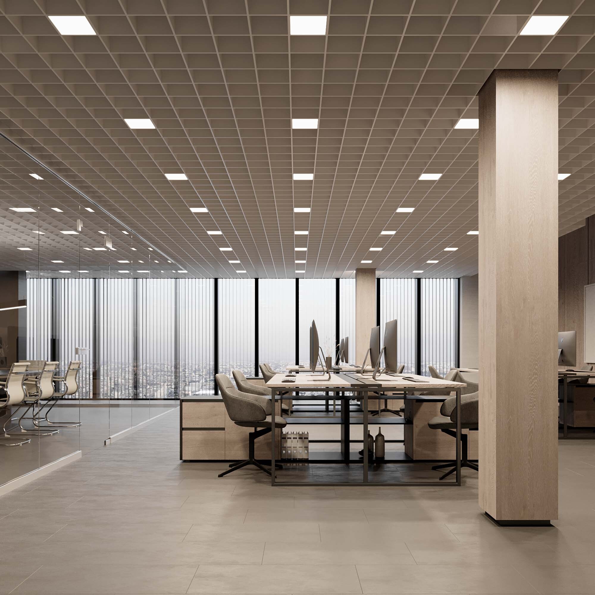 Встраиваемый светильник даунлайт для установки в потолки Грильято с размером ячейки 200х200 мм и высотой направляющих 30, 40 или 50 мм. Мощность 24 Вт, св. поток 2187 лм, 93 лм/Вт, тёплый 3000 K, CRI>90, угол 100°, напряжение питания 230 В. Белый квадратный корпус из алюминия, степень защиты IP40. Размер: длина 190 мм, ширина 190 мм, высота 40 мм. Монтаж встраиваемый, установочное отверстие: длина 190 мм, ширина 190 мм. Драйвер 24-40 В, 600 мА, пульсация <1%.
