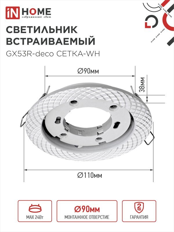 Светильник GX53R-deco СЕТКА-WH встраив. под лампу GX53 бел. IN HOME 4690612044354