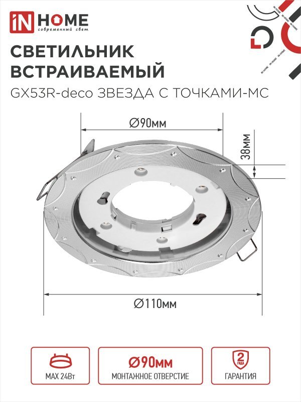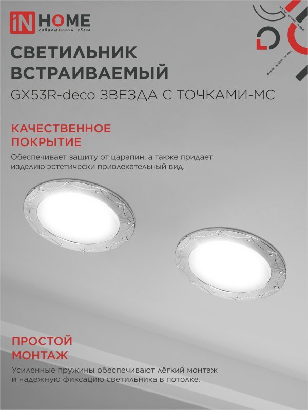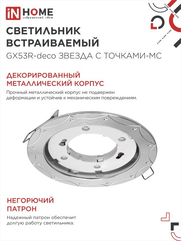 Светильник GX53R-deco ЗВЕЗДА С ТОЧКАМИ-MC встраив. под лампу GX53 матов. хром IN HOME 4690612044439