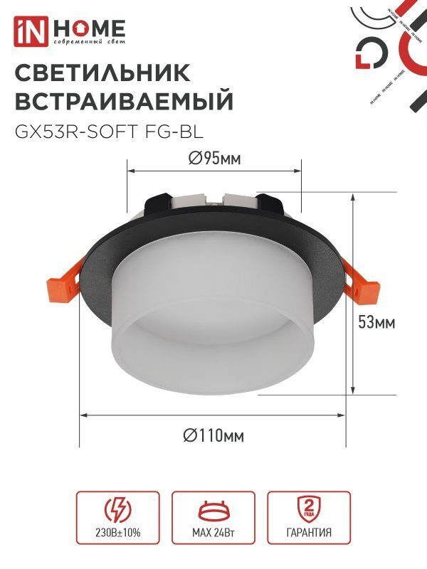 Светильник GX53R-SOFT FG-BL 110х53мм встраив. под GX53 матов. плафон черн. IN HOME 4690612057910