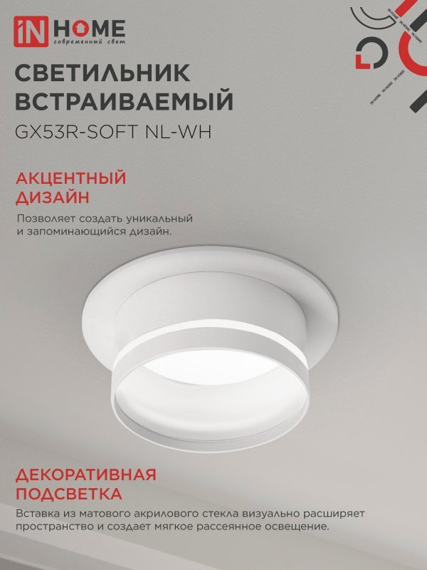 Светильник GX53R-SOFT NL-WH 110х63мм встраив. с подсветкой под GX53 бел. IN HOME 4690612057989