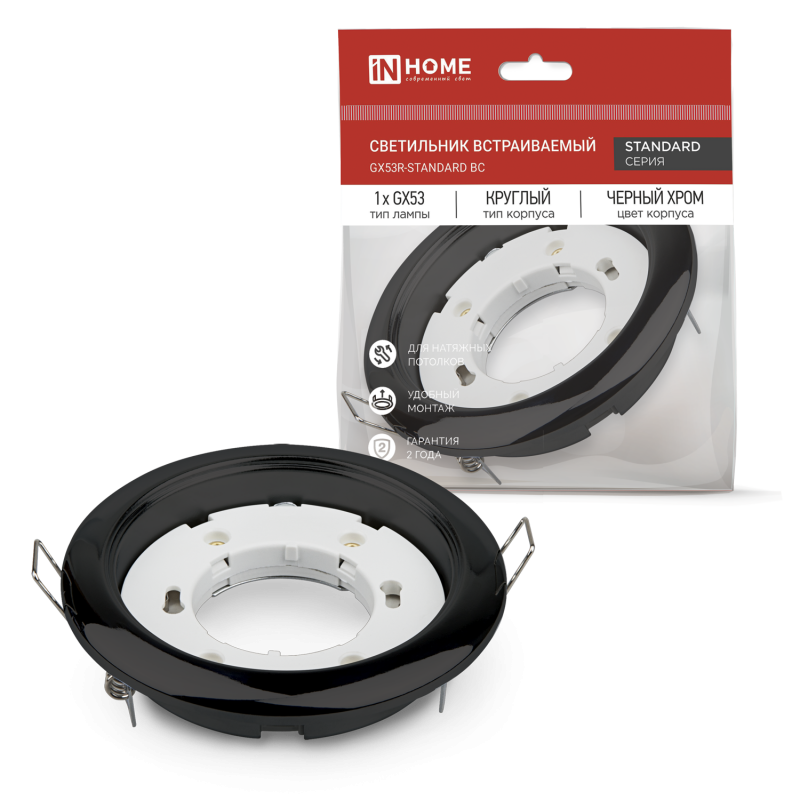 Светильник GX53R-standard BC 230В встраив. под лампу GX53 метал. черн. хром IN HOME 4690612037868