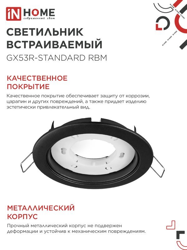 Светильник GX53R-standard RBM-10PACK встраив. под GX53 матов. черн. (уп.10шт) IN HOME 4690612044224