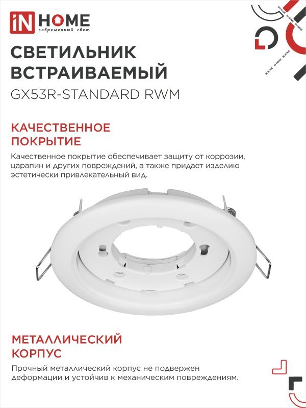 Светильник GX53R-standard RWM-10PACK встраив. под GX53 матов. бел. (уп.10шт) IN HOME 4690612044200