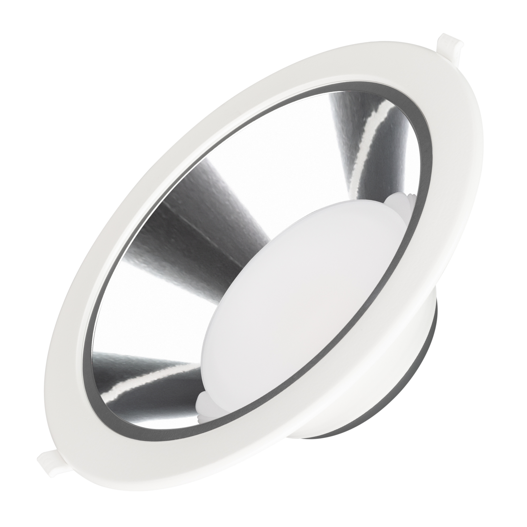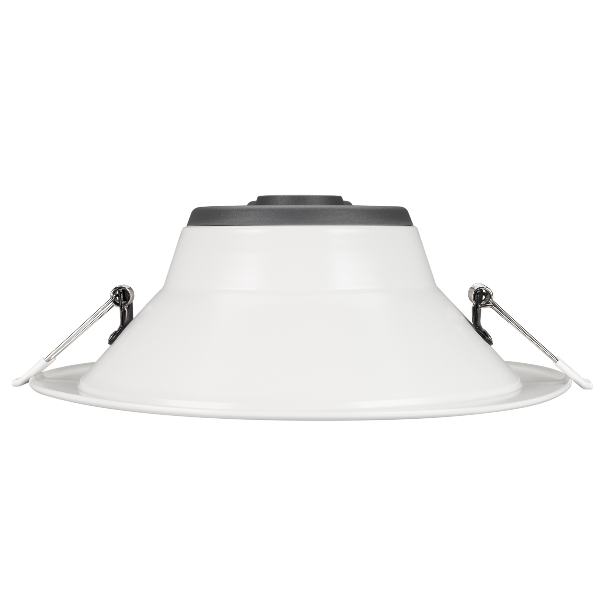 Светильник даунлайт с изменяемой цветовой температурой и переключателем на корпусе. Мощность 28 Вт, св. поток 3000 лм, 108 лм/Вт, белый 6000К, или дневной 4000К, или теплый 3000К (выбор цвета свечения при установке, фиксированный), CRI>80, угол 80°, напряжение питания 230 В. Белый круглый корпус из алюминия, степень защиты IP20. Размер: диаметр 232 мм, высота 83 мм. Монтаж встраиваемый, установочное отверстие: диаметр 195-210 мм. Драйвер 25-43 В, 700 мА, пульсация <0,7%.