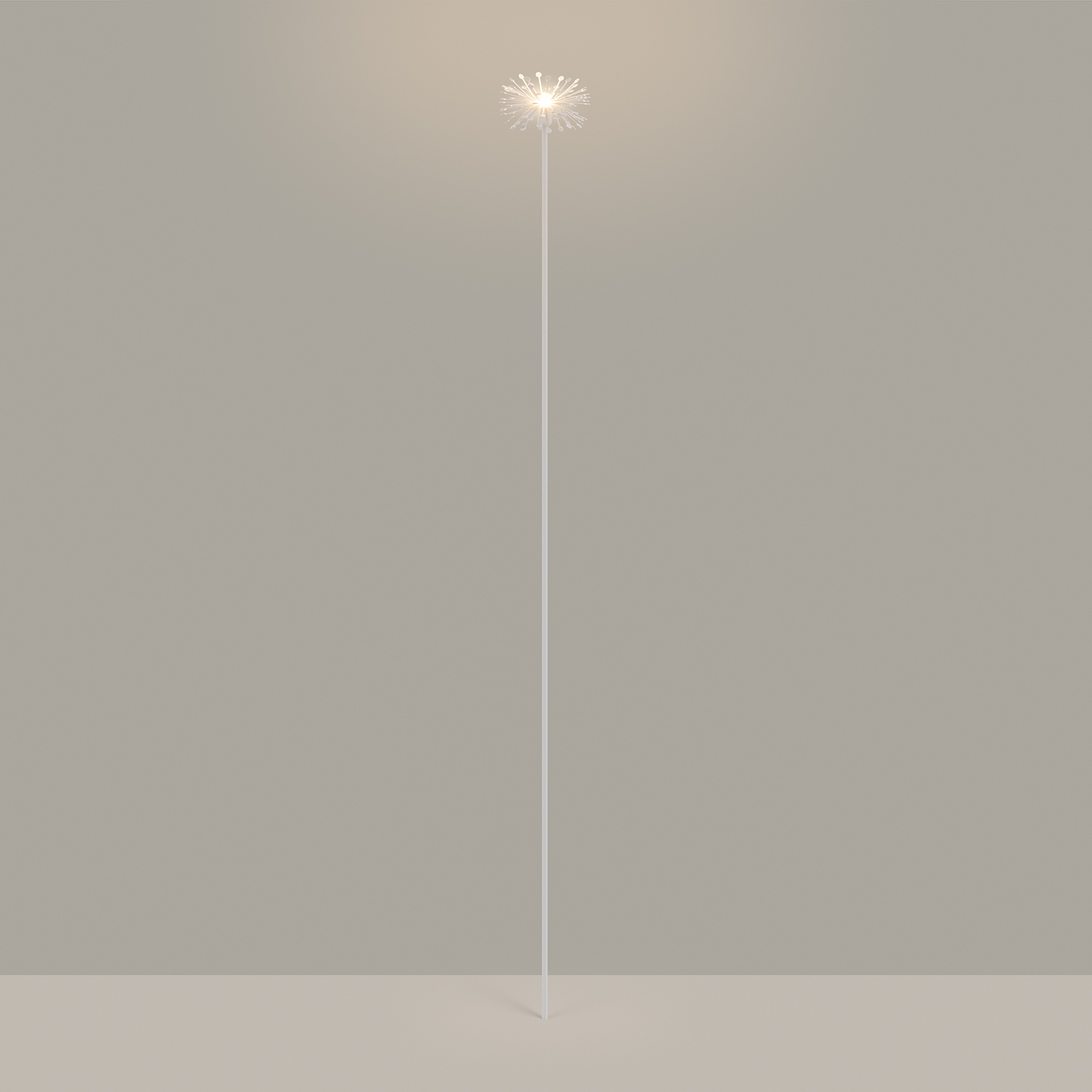 Уличный декоративный светодиодный светильник. Мощность 0.5 Вт, св. поток 13 лм, 92 лм/Вт, теплый 3000 K, CRI>80, угол излучения 24°, напряжение питания 24 В. Белый корпус из алюминия, прозрачный матовый рассеиватель из PMMA. Степень защиты IP65. Размер: диаметр 105 мм, высота 895 мм, высота углубления 155 мм. Монтаж в грунт с помощью основания пика (входит в комплект поставки). Драйвер приобретается отдельно.