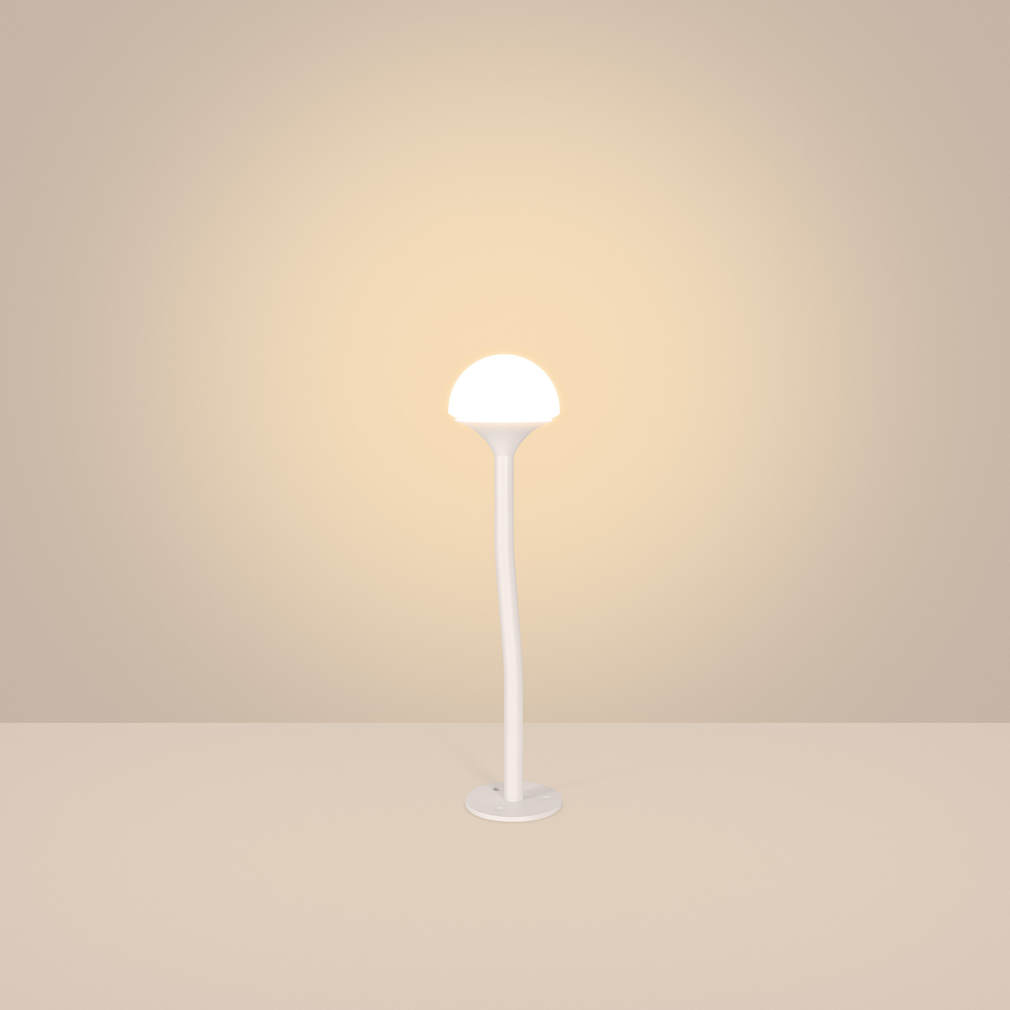Уличный декоративный светодиодный светильник. Мощность 1 Вт, св. поток 111 лм, 122 лм/Вт, теплый 3000 K, CRI>80, угол излучения 85°, напряжение питания 24 В. Белый корпус из алюминия, прозрачный матовый рассеиватель из PMMA. Степень защиты IP65. Размер: диаметр 58 мм, высота 255 мм, высота углубления 155 мм. Монтаж в грунт с помощью основания пика (входит в комплект поставки). Драйвер приобретается отдельно.