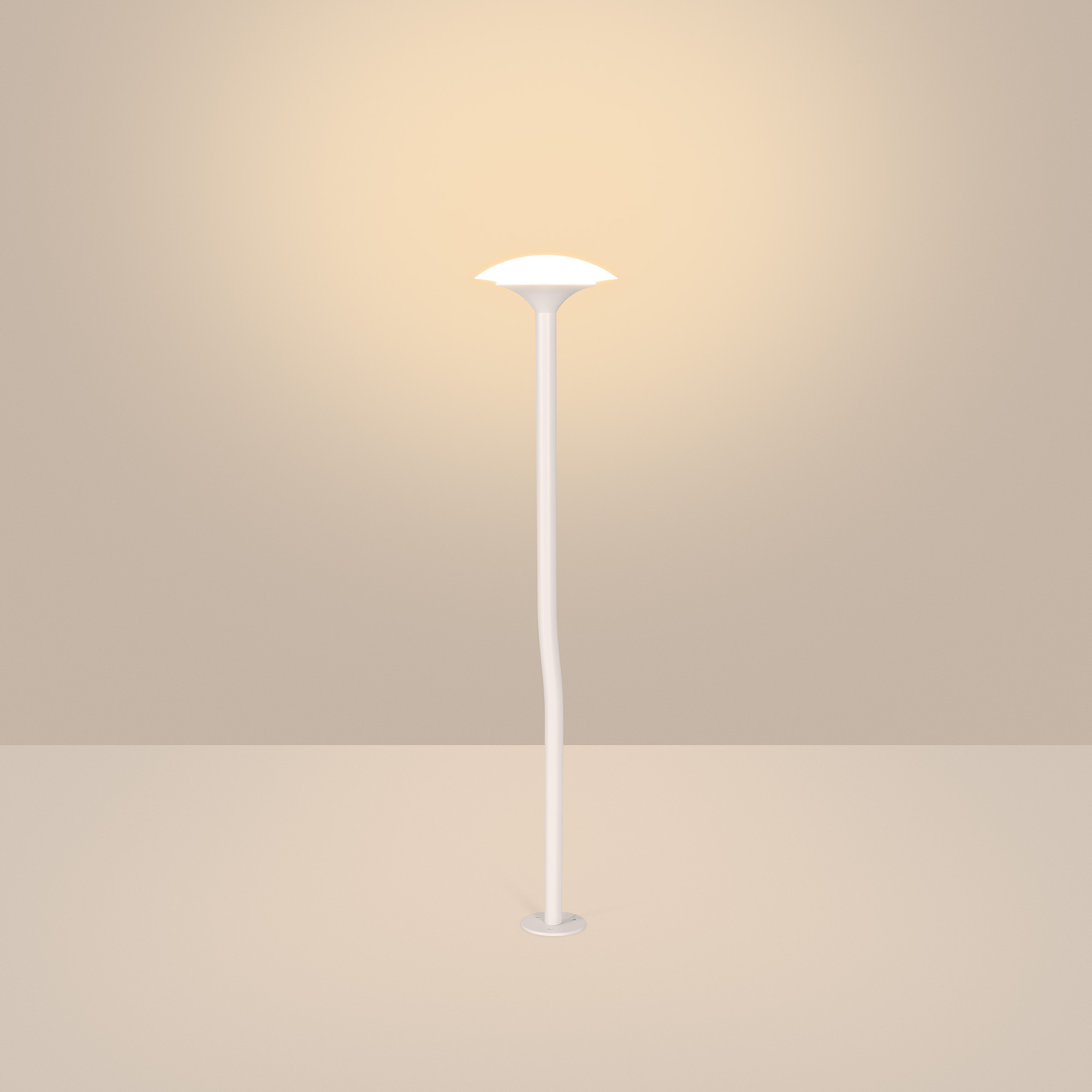 Уличный декоративный светодиодный светильник. Мощность 4 Вт, св. поток 490 лм, 122 лм/Вт, теплый 3000 K, CRI>80, угол излучения 100°, напряжение питания 24 В. Белый корпус из алюминия, прозрачный матовый рассеиватель из PMMA. Степень защиты IP65. Размер: диаметр 98 мм, высота 540 мм, высота углубления 155 мм. Монтаж в грунт с помощью основания пика (входит в комплект поставки). Драйвер приобретается отдельно.