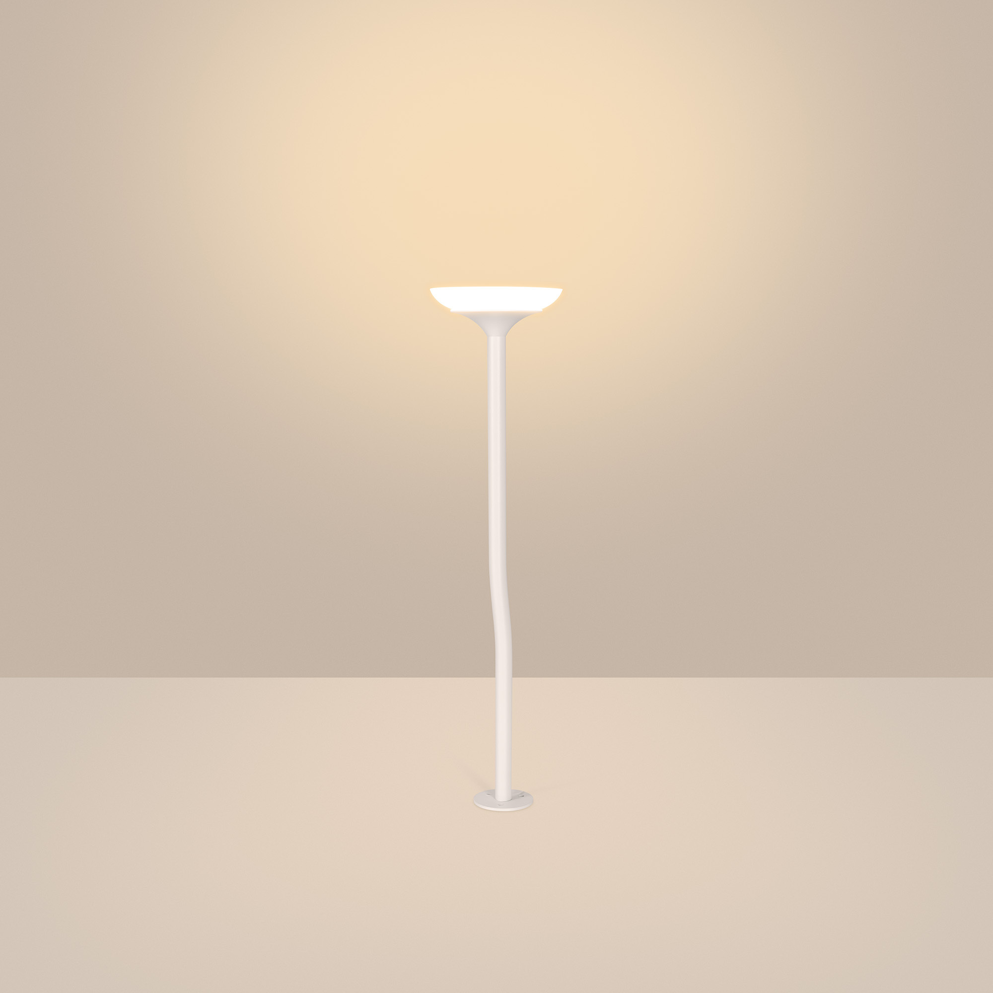 Уличный декоративный светодиодный светильник. Мощность 2 Вт, св. поток 252 лм, 122 лм/Вт, теплый 3000 K, CRI>80, угол излучения 100°, напряжение питания 24 В. Белый корпус из алюминия, прозрачный матовый рассеиватель из PMMA. Степень защиты IP65. Размер: диаметр 98 мм, высота 450 мм, высота углубления 155 мм. Монтаж в грунт с помощью основания пика (входит в комплект поставки). Драйвер приобретается отдельно.