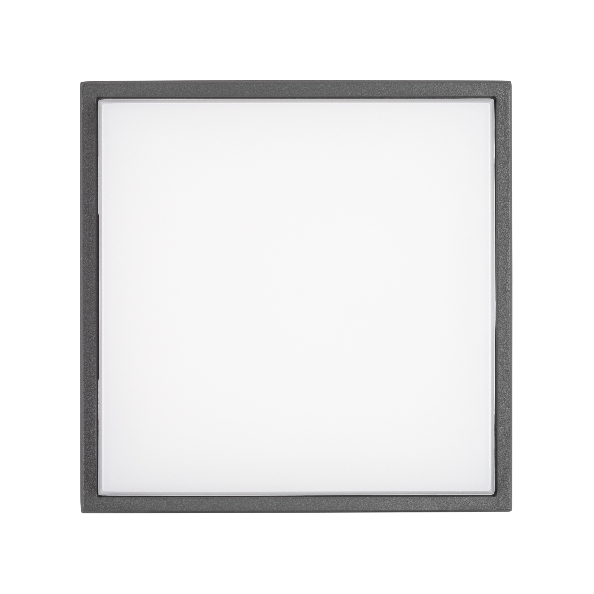 Накладной светильник 10Вт, серый алюминиевый корпус, матовый рассеиватель из поликарбоната. Цвет ТЕПЛЫЙ БЕЛЫЙ 3000K, св.поток 790лм, CRI(Ra)>80, угол 110°. Размер 175x175x45мм. IP54. Питание AC220-240V, 10Вт, встроенный драйвер.
