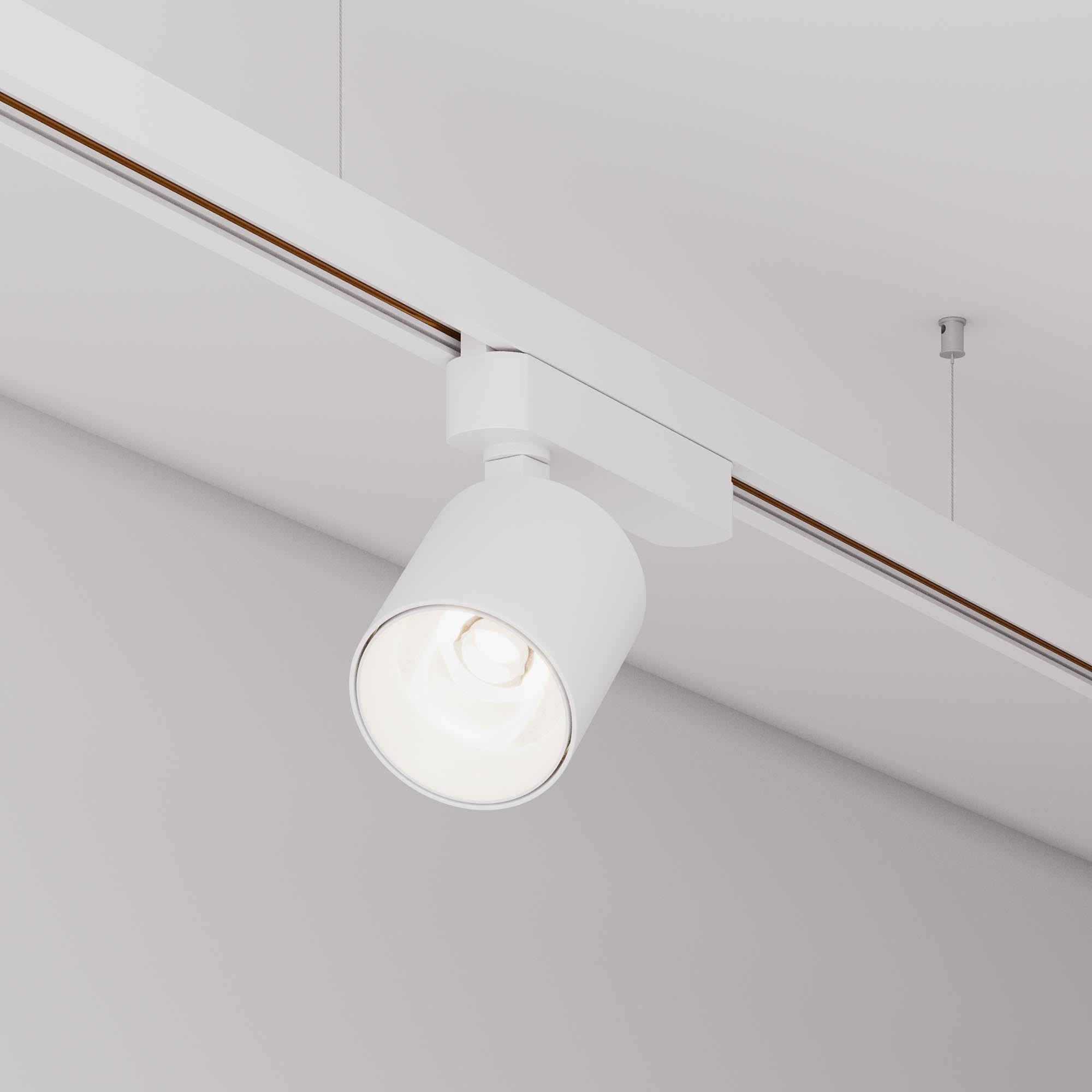 Светильник для однофазных треков, 8 Вт. Цвет свечения ТЁПЛЫЙ 3000K, световой поток 800 лм, угол 20°, CRI>90. Корпус круглый, металл, цвет белый, IP20. Размеры Ø60x59,7 мм. Монтаж на трек 1-фазный. Входное напряжение AC220-240V, мощность 10 Вт. Драйвер встроенный (25-40V, 250 mA).Пульсация <1%.