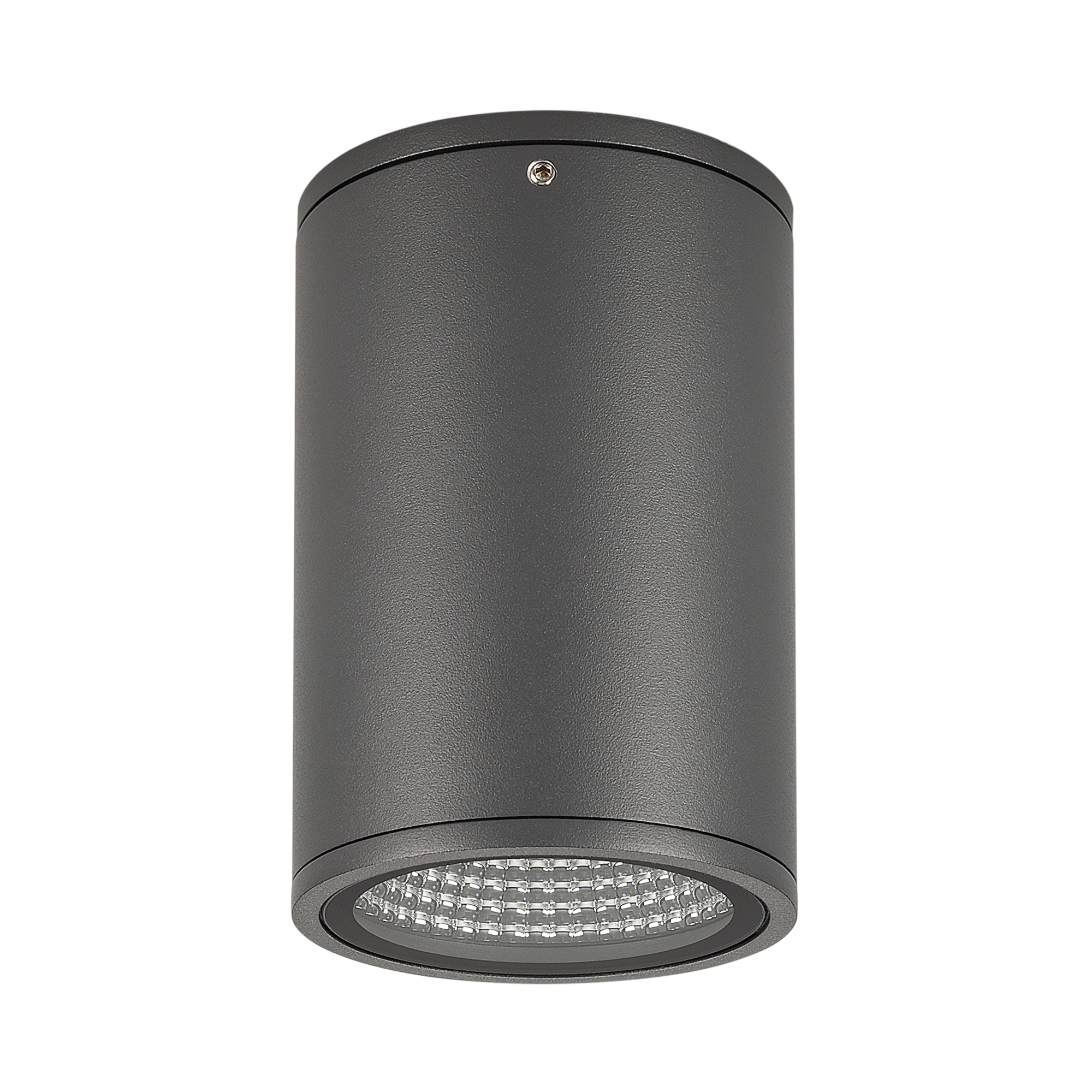 Накладной светильник 12Вт, серый алюминиевый корпус, оптическое закаленное стекло. Цвет ДНЕВНОЙ 4000K, св.поток 790лм, CRI(Ra)>80, угол 44°. Размер Ф90x137мм. IP54. Питание AC230V, 12Вт, встроенный драйвер 30-42 В, 300 мА.