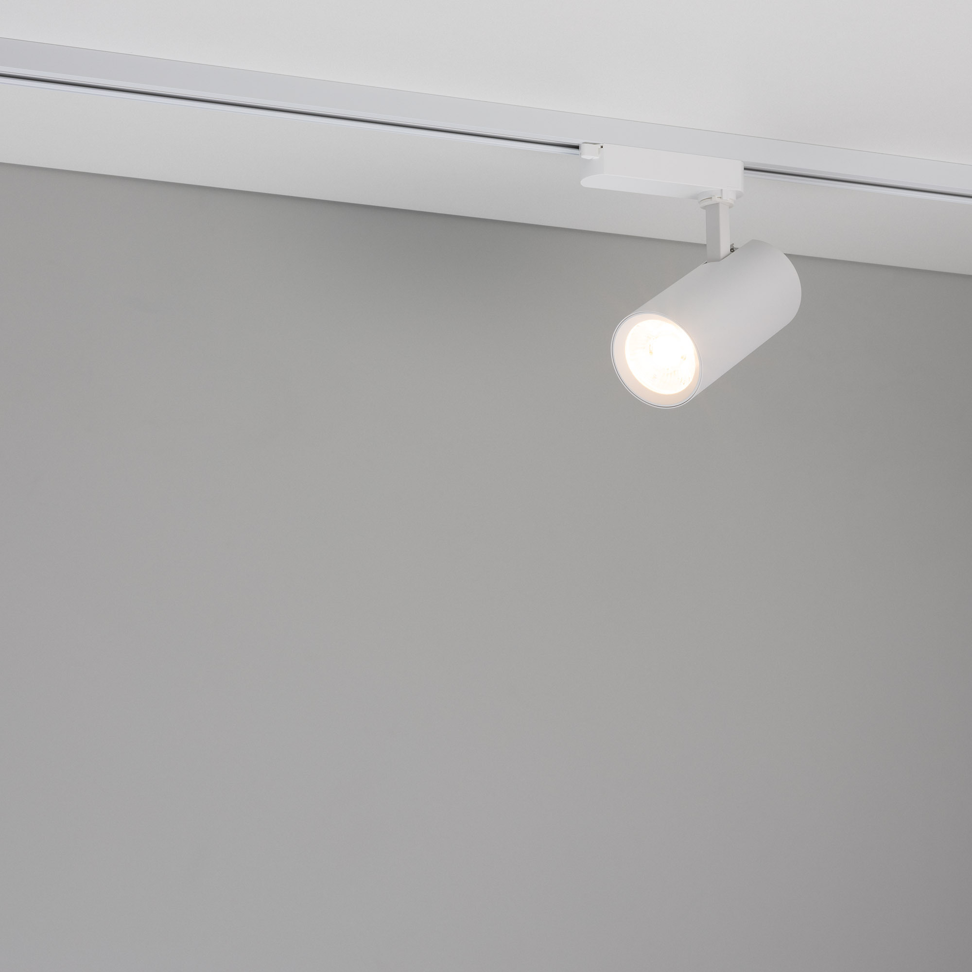 Светильник для треков/шин 2 провода. Мощность 20 Вт, св. поток без решетки honeycomb 2000 лм, 100 лм/Вт, с решеткой honeycomb 1320 лм, 66 лм/Вт, дневной 4000 K, CRI>90, угол 55°, напряжение питания 230 В. Белый круглый корпус из алюминия, материал линзы PMMA, степень защиты IP20. Антибликовая решетка honeycomb в комплекте. Размер: диаметр 74 мм, длина световой части 154 мм. Монтаж на трек 1-фазный. Драйвер встроенный 500 мА 25-40 В, пульсация <5%.