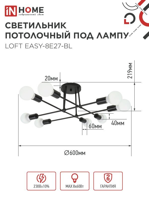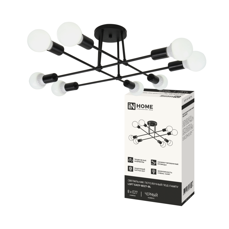 Светильник LOFT EASY-8E27-BL 8хE27 потолочн. под лампу; черн. IN HOME 4690612062662