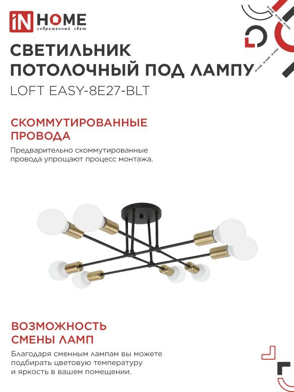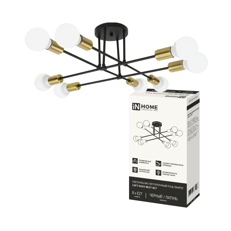 Светильник LOFT EASY-8E27-BLT 8хE27потолочн. под лампу; латунь черн. IN HOME 4690612062679