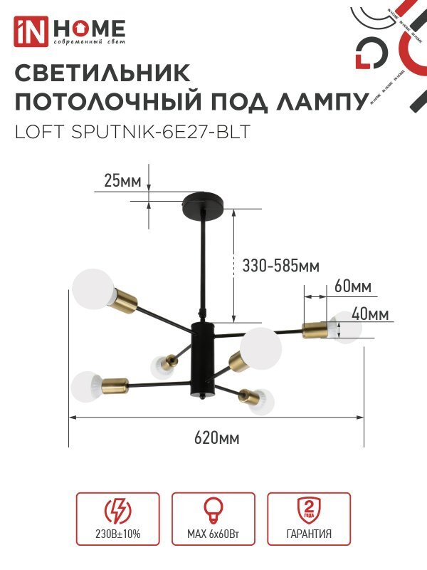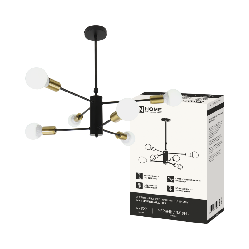 Светильник LOFT SPUTNIK-6E27-BLT 6хE27 потолочн. под лампу; латунь черн. IN HOME 4690612062693