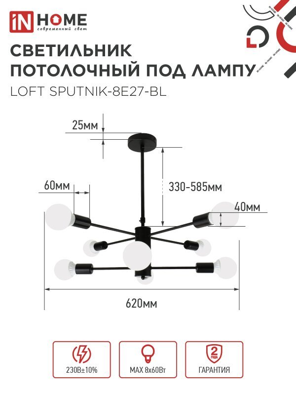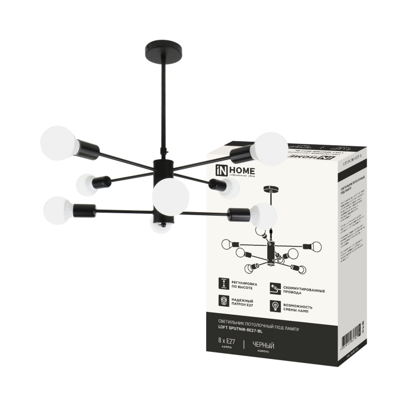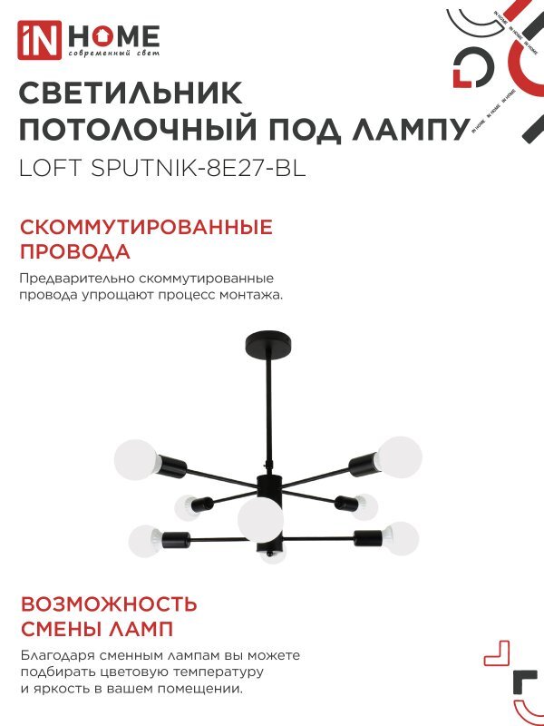 Светильник LOFT SPUTNIK-8E27-BL 8хE27 потолочн. под лампу; черн. IN HOME 4690612062709
