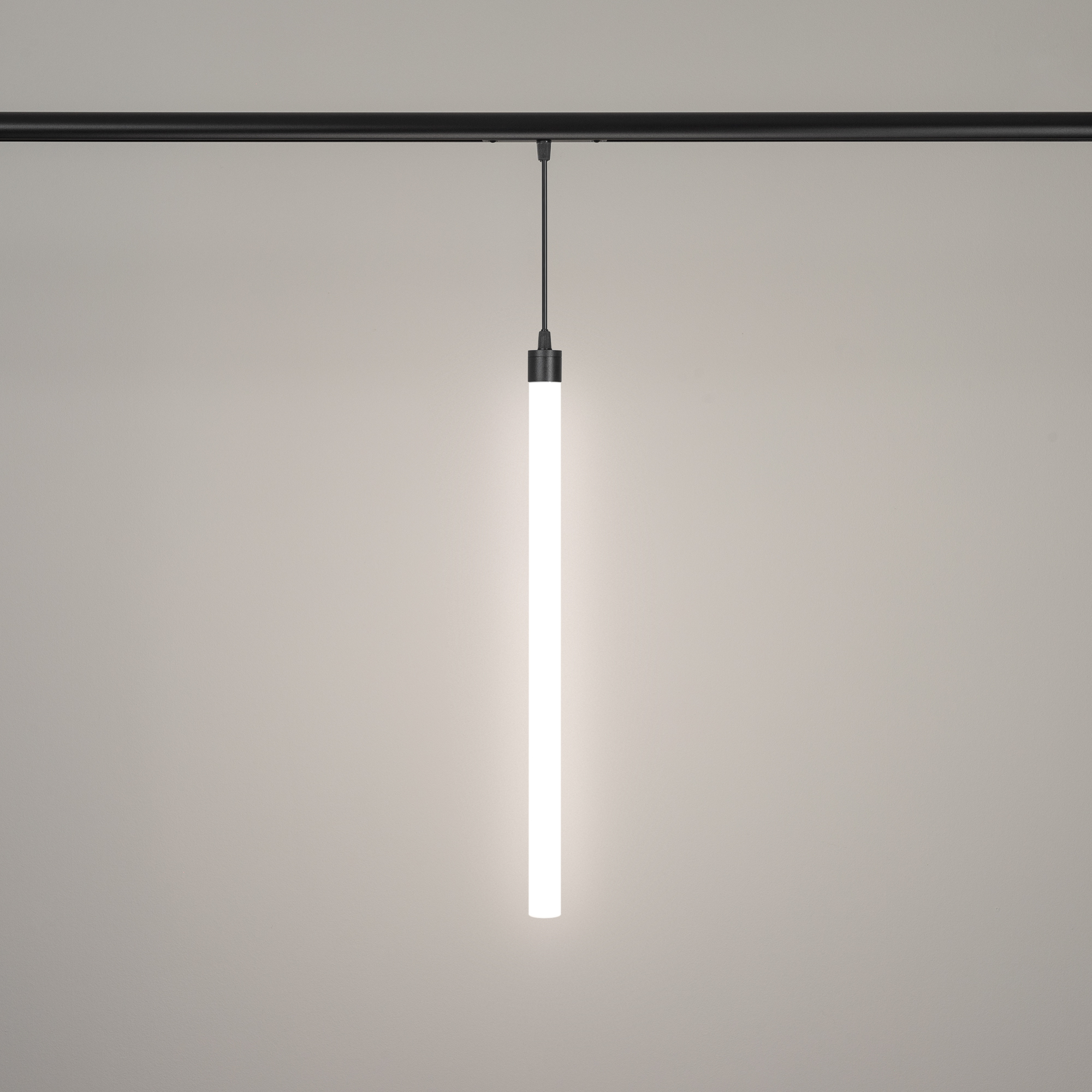 Светильник подвесной для магнитных треков серии FLEX. Мощность 7 Вт, св. поток 450 лм, 67 лм/Вт, дневной 4000 K, CRI>90, угол 360°, напряжение питания 48 В. Матовый белый фигурный корпус из ПВХ. Размер: диаметр 30 мм, длина 530 мм. Длина подвеса 195мм. Монтаж на магнитный трек FLEX.