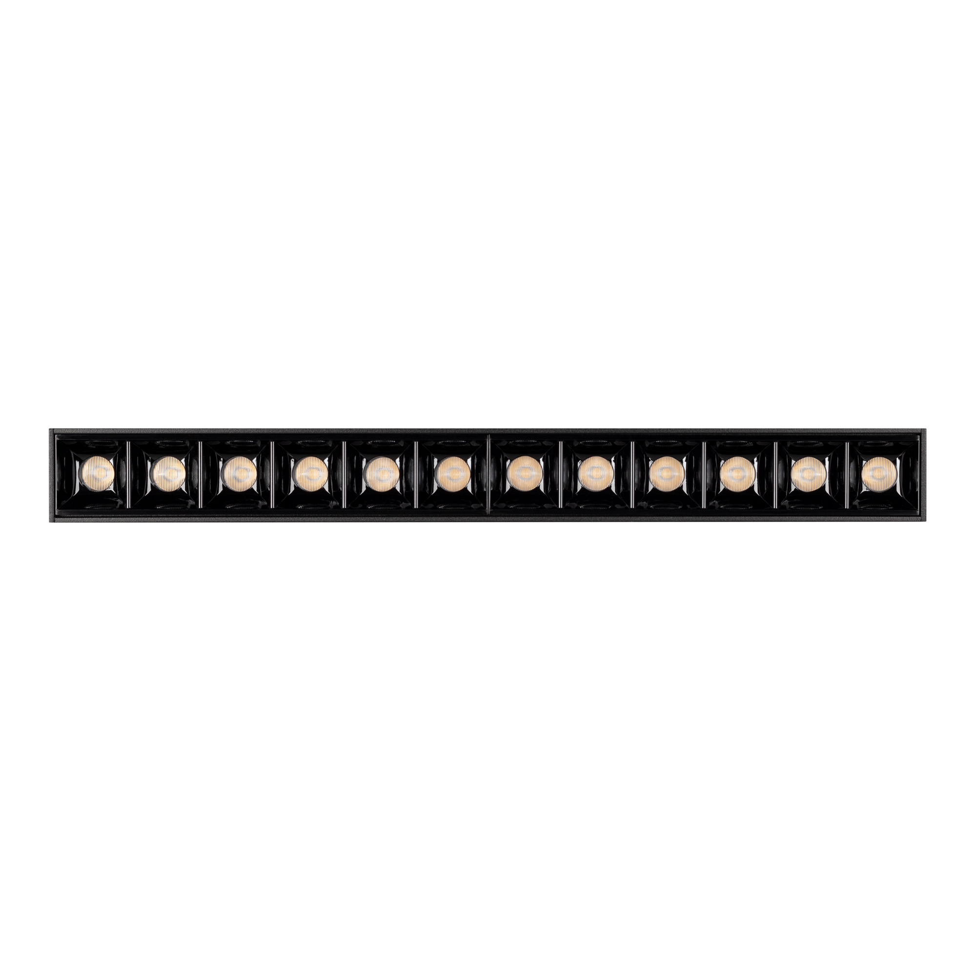 Светильник для магнитных треков шириной 45мм, 12Вт. Цвет свечения ТЕПЛЫЙ 3000K, световой поток 800лм, угол 15°, CRI>90. Корпус прямоугольный, металл, цвет черный, IP20. Размеры LxWxH 322x35x43мм. Входное напряжение DC24V, мощность 12Вт. Драйвер DС24V/AC230V поставляется отдельно. Диммируется только с 026407(1), 027633.