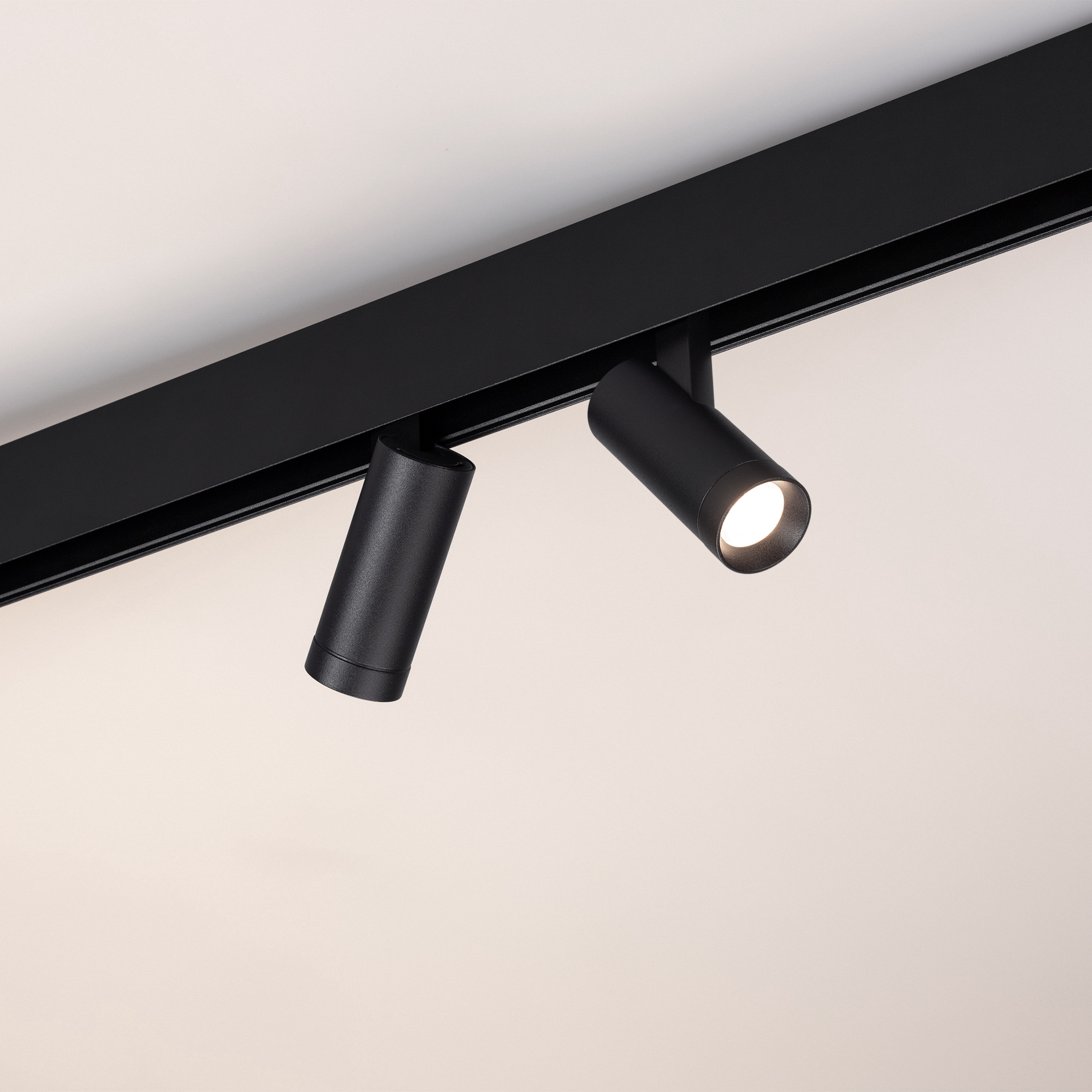 Светильник для магнитных треков MAG-ORIENT шириной 26 мм с управлением DALI. Мощность 6 Вт, св. поток 555 лм, 92 лм/Вт, дневной 4000 K, CRI>90, угол 24°, напряжение питания 48 В. Черный фигурный корпус из металл, экран поликарбонат, степень защиты IP20.Размеры LxWxH 204x35x132 мм. Длина светоизлучающего модуля 85мм. Монтаж на трек MAG-ORIENT. Пульсация <1%.