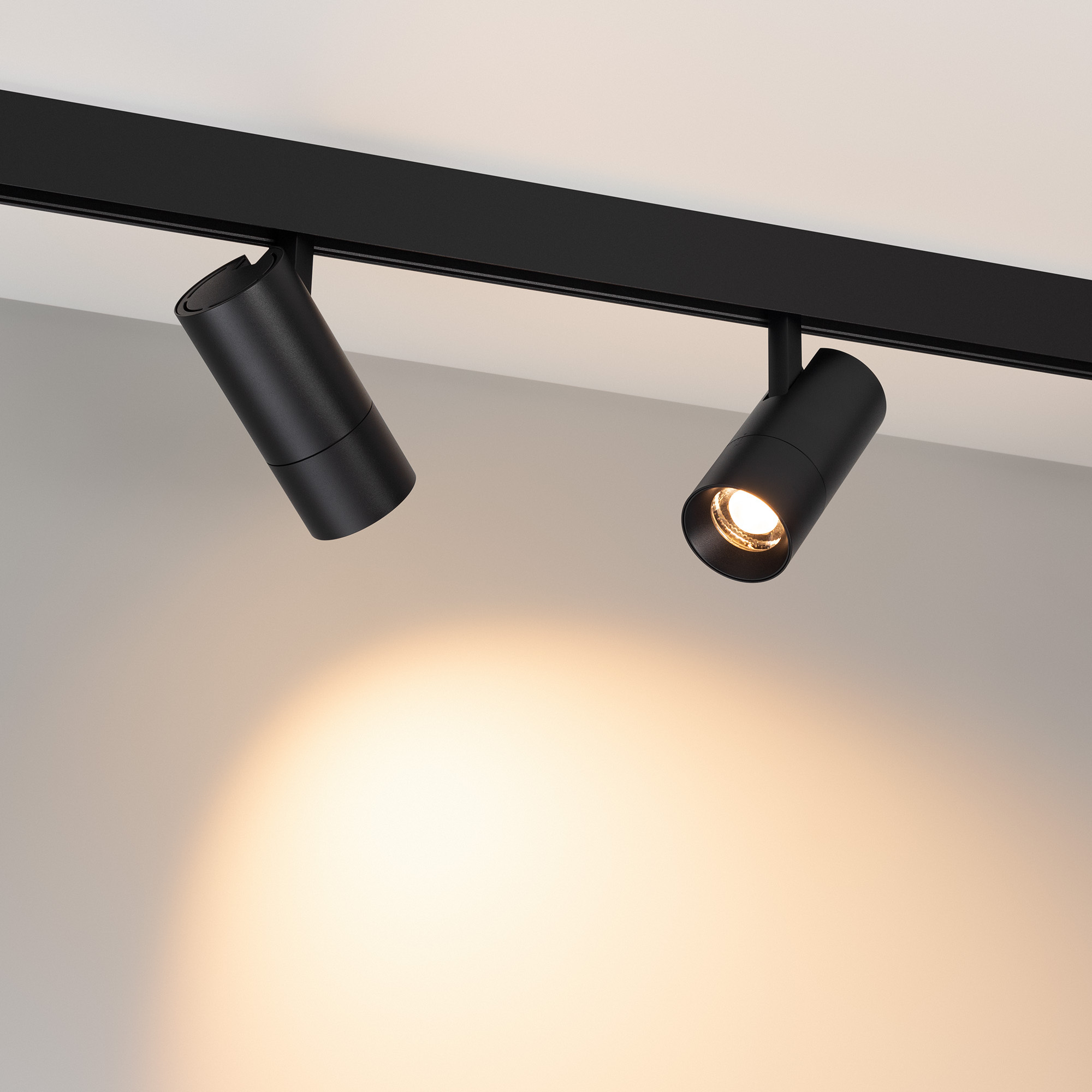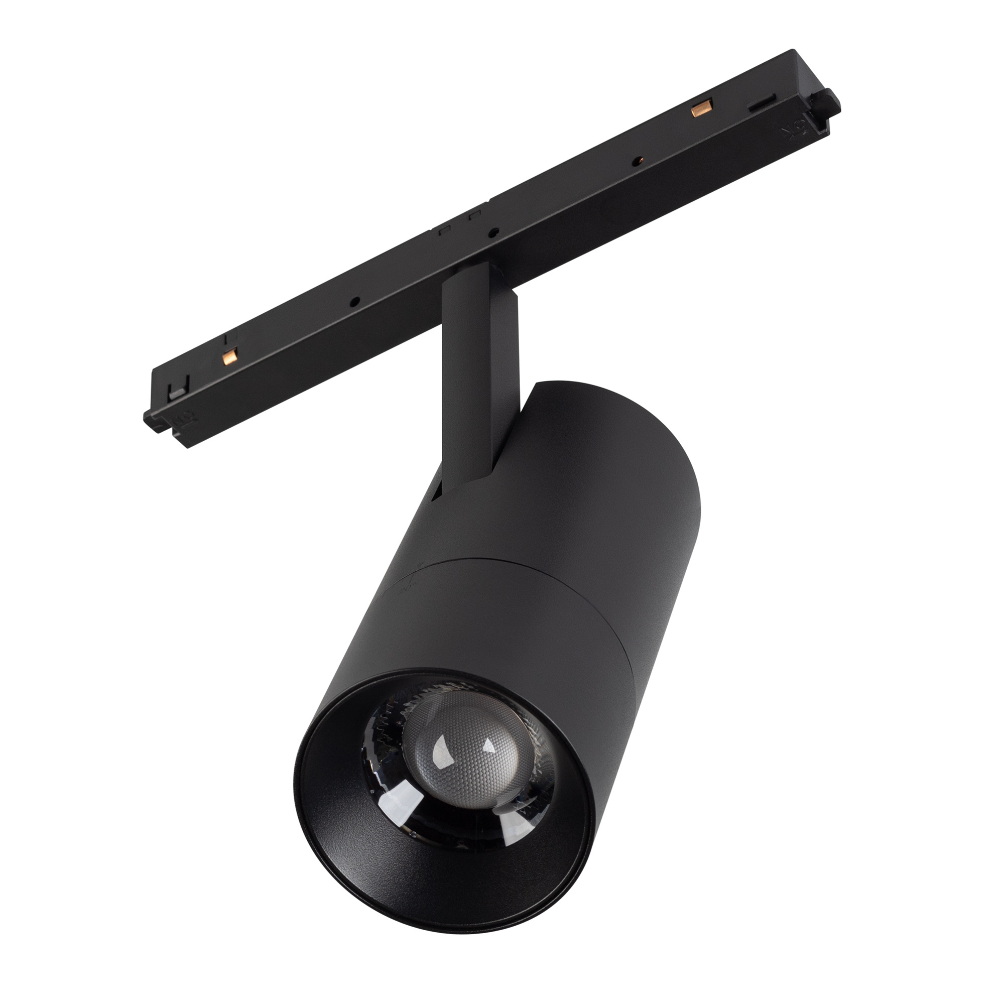 Светильник для магнитных треков MAG-ORIENT шириной 26 мм. Мощность 15 Вт, св. поток 1100 лм, 85 лм/Вт, теплый 3000 K, CRI>94, угол 34-60°, напряжение питания 48 В. Черный фигурный корпус из металл, экран поликарбонат, степень защиты IP20. Размеры LxWxH 204x66x211 мм. Длина светоизлучающего модуля 145 мм. Монтаж на трек MAG-ORIENT. Изменяемый угол светового потока, шаг регулировки 1 градус.