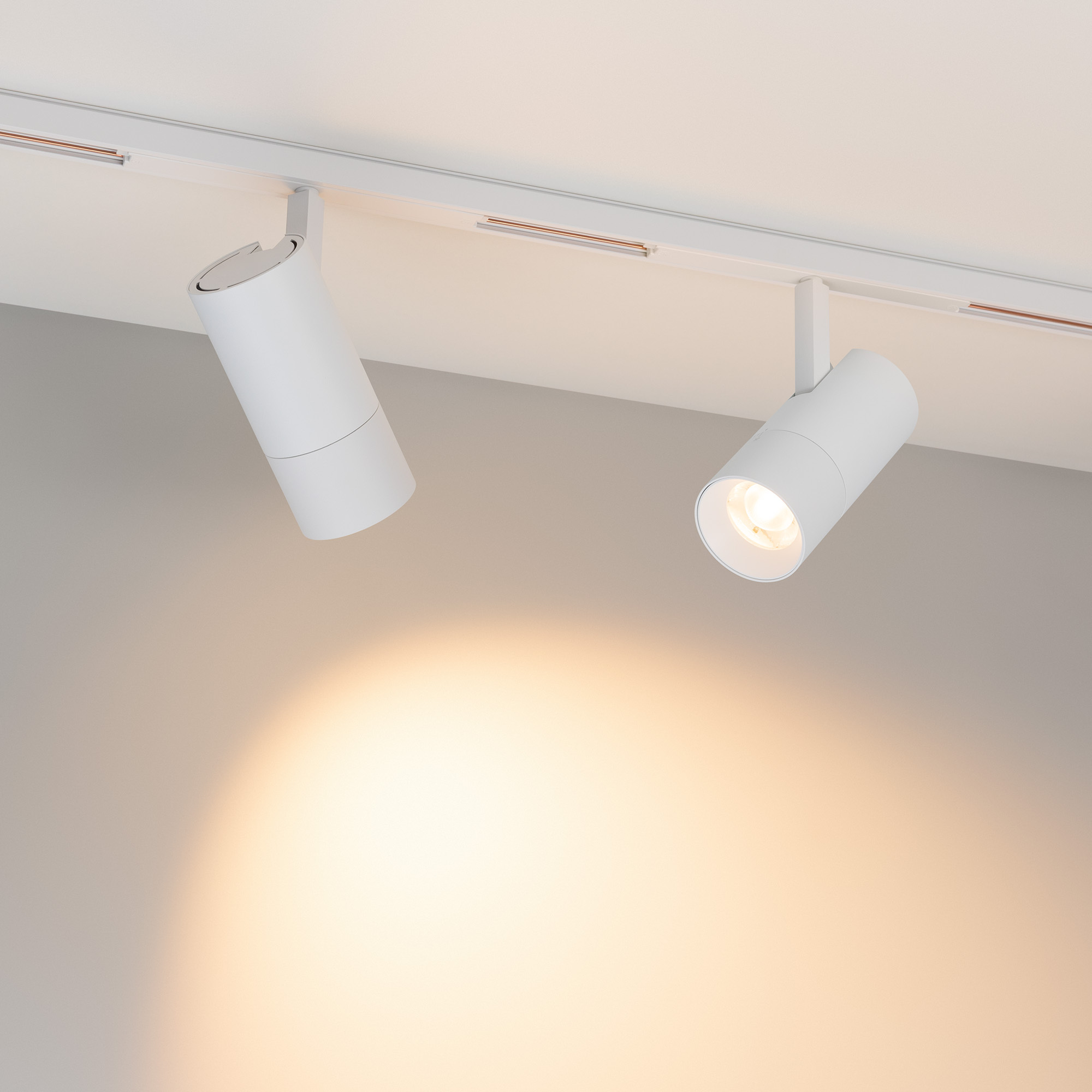 Светильник для магнитных треков MAG-ORIENT шириной 26 мм, с управлением по DALI. Мощность 15 Вт, св. поток 1100 лм, 73 лм/Вт, теплый 3000 K, CRI>90, угол 34-60°, напряжение питания 48 В. Белый фигурный корпус из металл, экран поликарбонат, степень защиты IP20. Размеры LxWxH 204x66x211 мм. Длина светоизлучающего модуля 145мм. Монтаж на трек MAG-ORIENT. Изменяемый угол светового потока, шаг регулировки 1 градус.