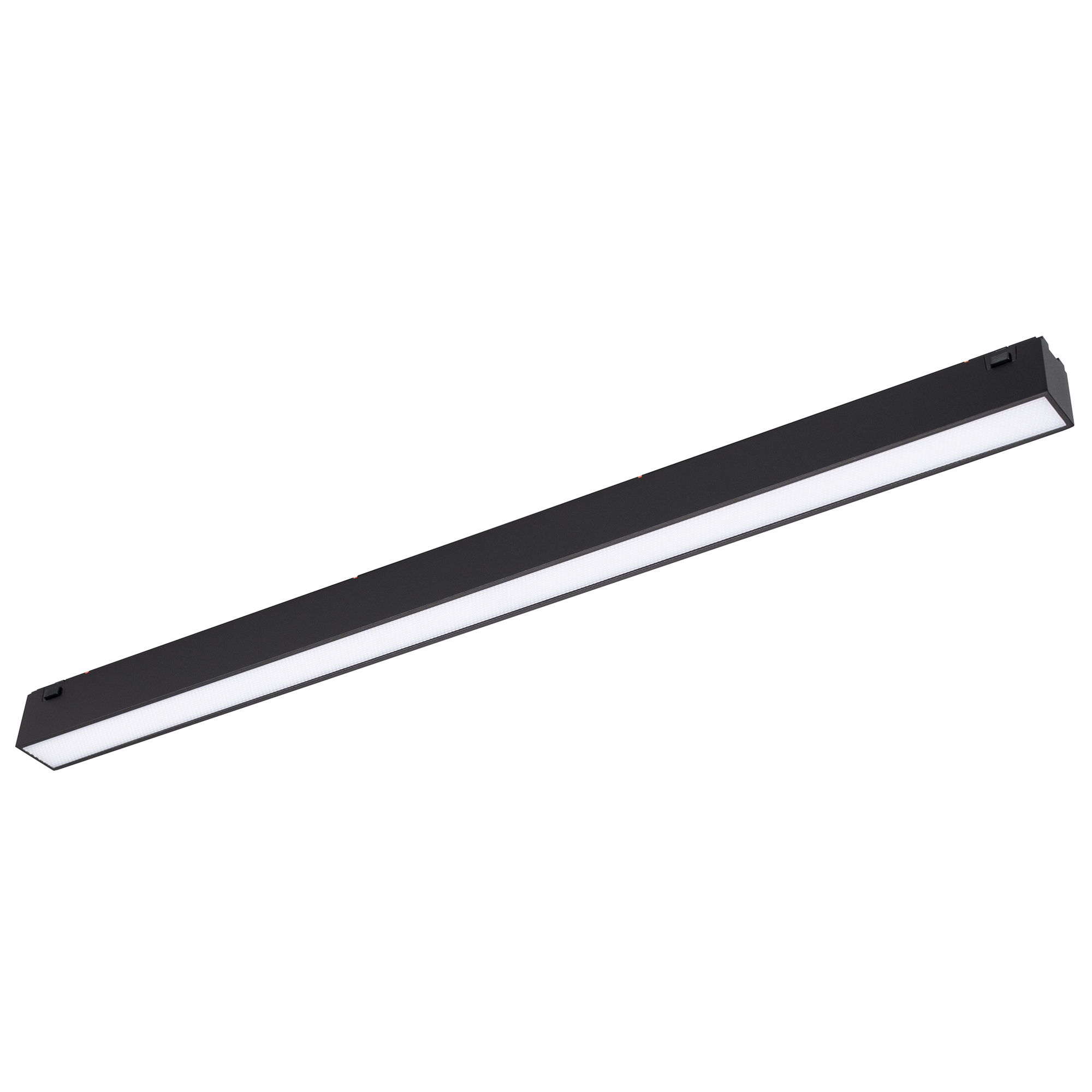 Светильник для магнитных треков MAG-VIBE. Мощность 24 Вт, св. поток 1820 лм, 76 лм/Вт, дневной 4000 K, CRI>90, угол 100°, напряжение питания 48 В. Черный прямоугольный корпус из алюминия, экран поликарбонат, степень защиты IP20. Размер: длина 485 мм, ширина 25 мм, высота 29 мм. Монтаж на трек MAG-VIBE. Пульсация <1%.
