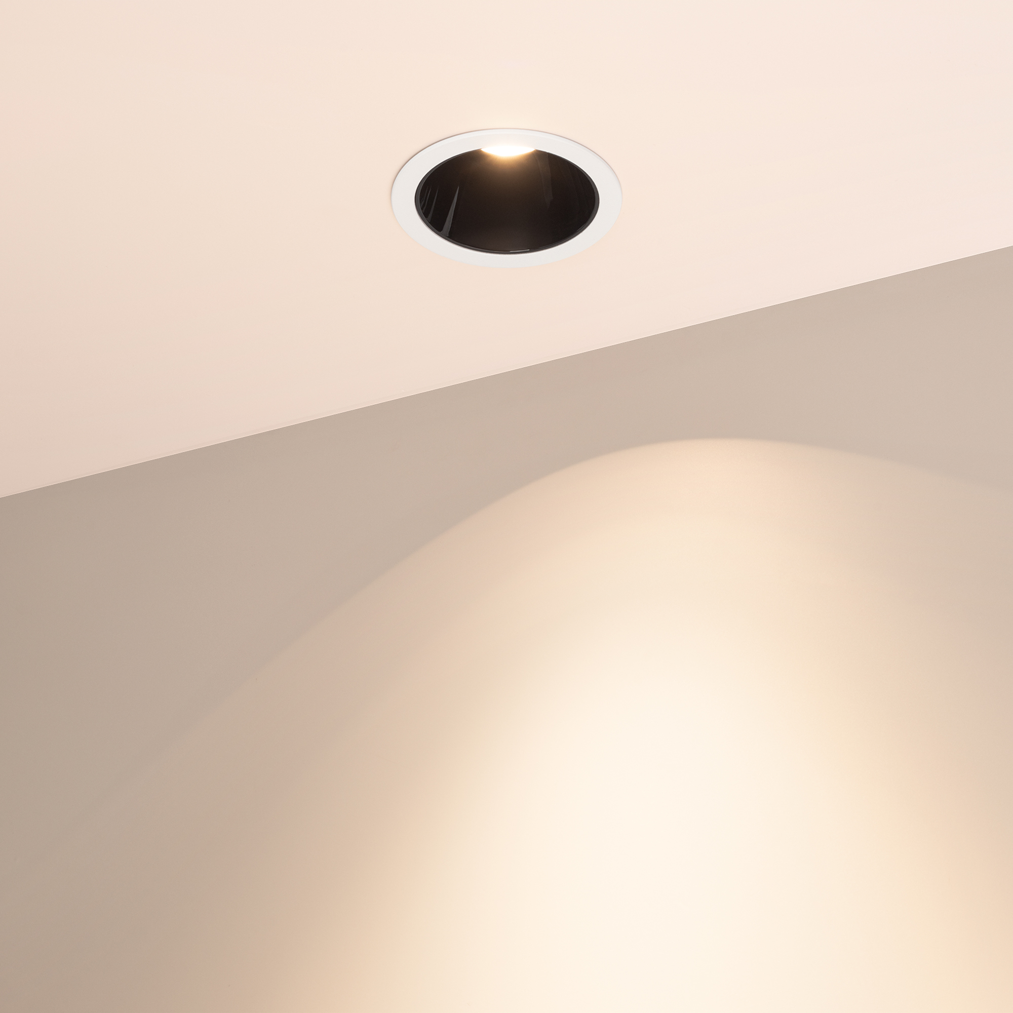 Встраиваемый светильник даунлайт. Мощность 20 Вт, св. поток 1640 лм, 82 лм/Вт, теплый 3000 K, CRI>90, UGR<16, угол 30°, напряжение питания 230 В. Белый круглый корпус из алюминия, черный ГЛЯНЦЕВЫЙ отражатель из PMMA, степень защиты IP20. Размер: диаметр 72 мм, высота 79 мм. Монтаж встраиваемый, установочное отверстие: диаметр 66 мм. Драйвер 24-40 В, 500 мА, пульсация <2%.