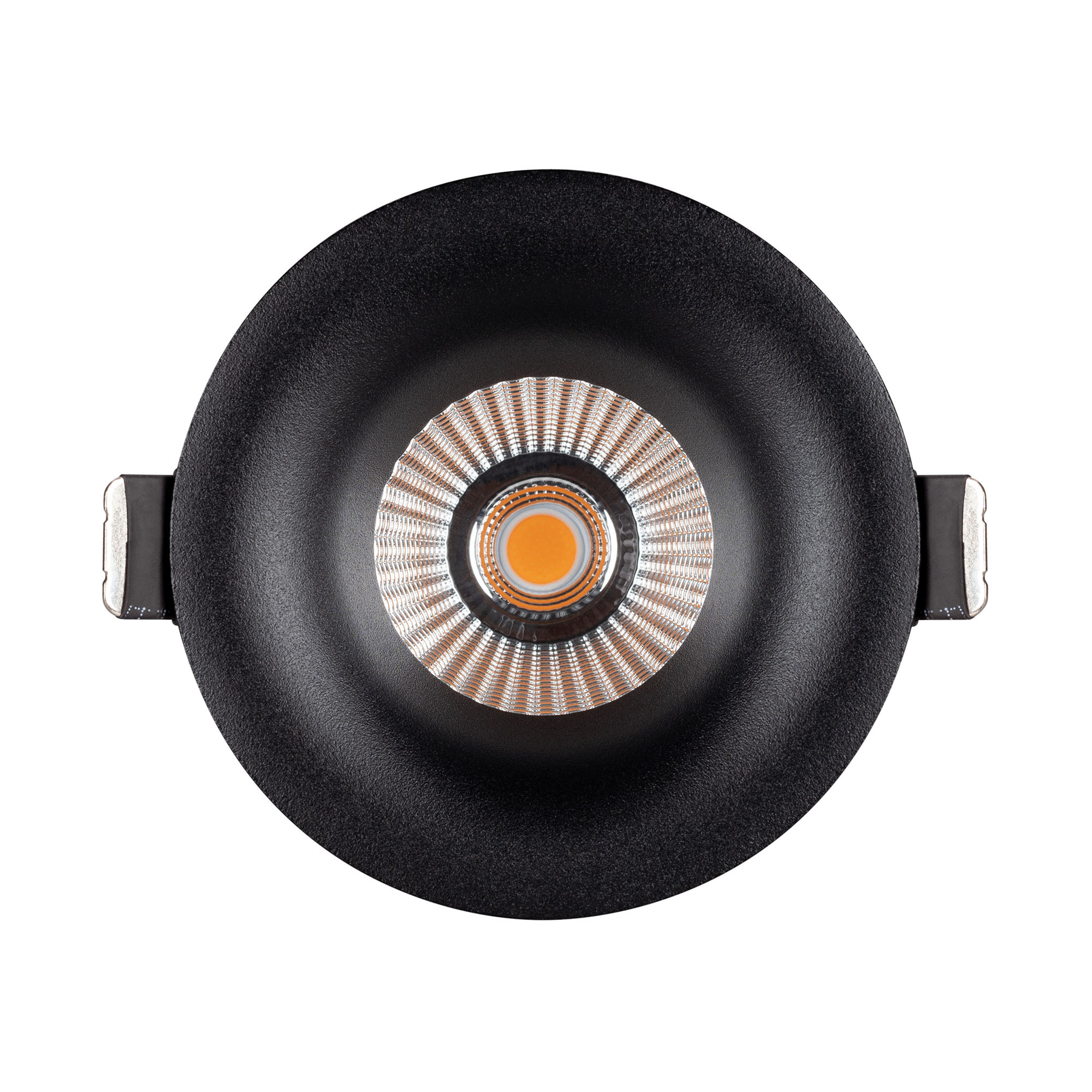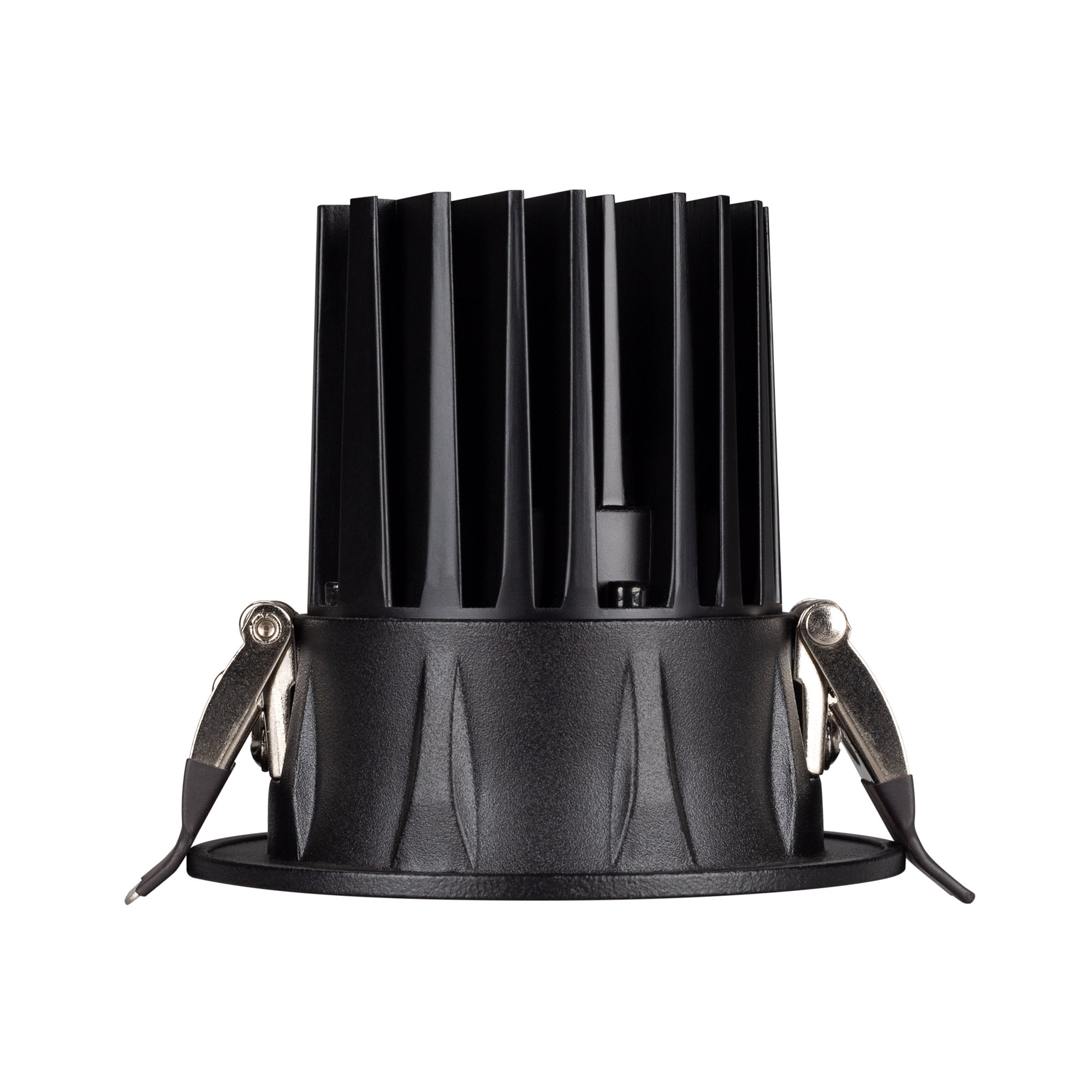 Встраиваемый светильник даунлайт. Мощность 10 Вт, св. поток 880 лм, 88 лм/Вт, тёплый 3000 K, CRI>90, угол 36°, напряжение питания 230 В. Черный круглый корпус из алюминия, экран PMMA, степень защиты IP54. Размер: диаметр 86 мм, высота 80 мм. Монтаж встраиваемый, установочное отверстие: диаметр 75 мм. Драйвер IP54, 20-40 В, 250 мА, пульсация <1%.