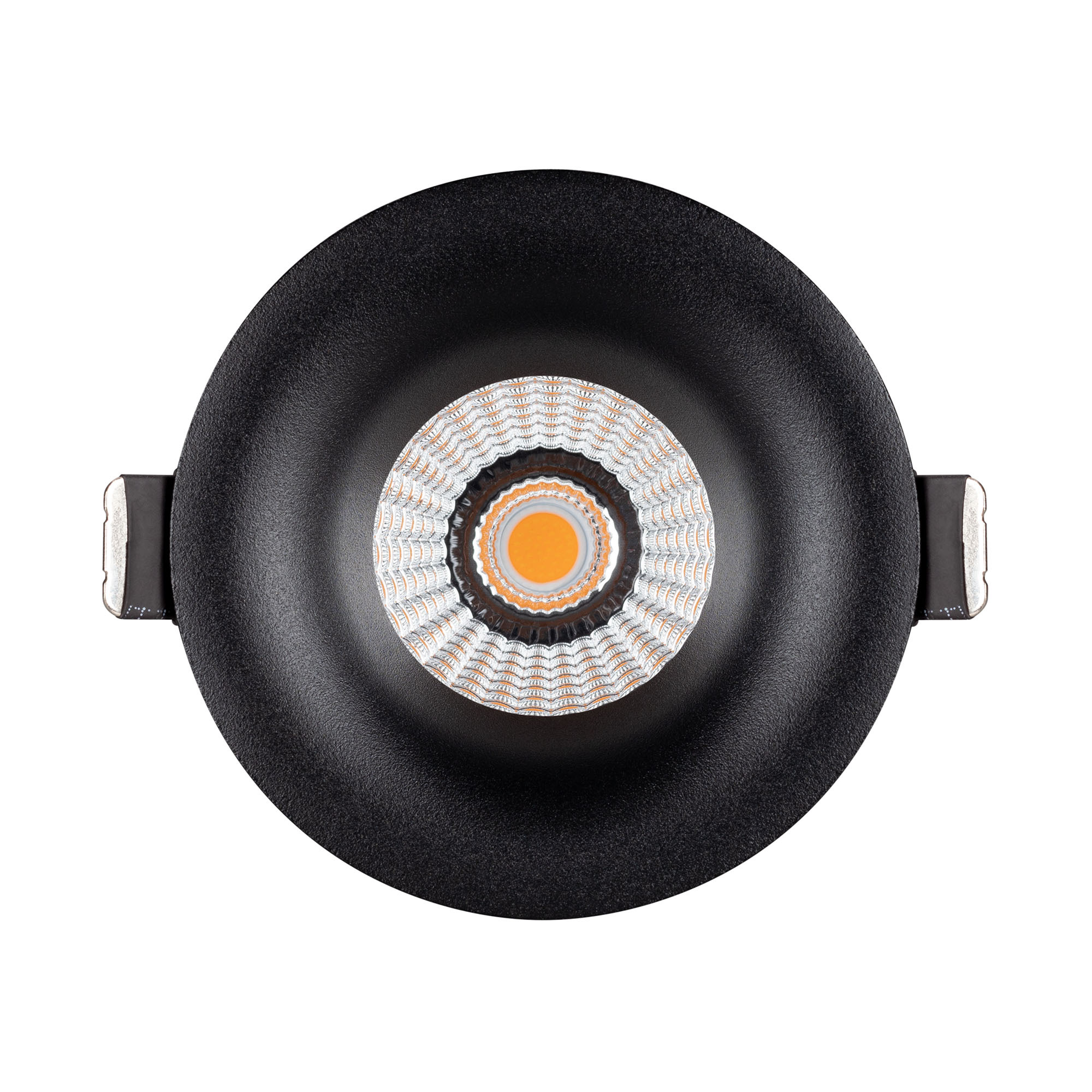 Встраиваемый светильник даунлайт. Мощность 10 Вт, св. поток 880 лм, 88 лм/Вт, тёплый 3000 K, CRI>90, угол 60°, напряжение питания 230 В. Черный круглый корпус из алюминия, экран PMMA, степень защиты IP54. Размер: диаметр 86 мм, высота 80 мм. Монтаж встраиваемый, установочное отверстие: диаметр 75 мм. Драйвер IP54, 20-40 В, 250 мА, пульсация <1%.