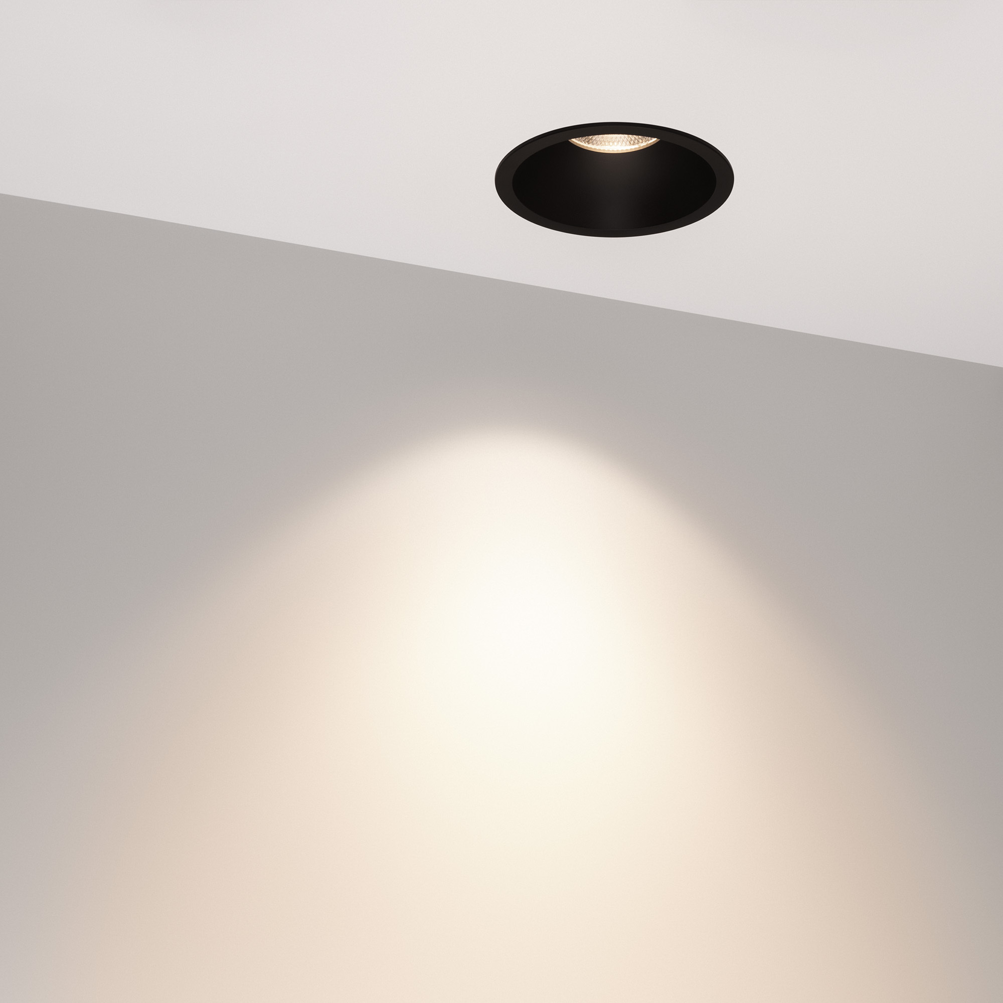 Встраиваемый светильник даунлайт. Мощность 15 Вт, св. поток 1260 лм, 84 лм/Вт, дневной 4000 K, CRI>90, угол 50°, напряжение питания 230 В. Чёрный круглый корпус из алюминия, степень защиты IP20. Размер: диаметр 106 мм, высота 63 мм. Монтаж встраиваемый, установочное отверстие: диаметр 95 мм. UGR<14. Драйвер 27-40 В, 350 мА, пульсация <2%.
