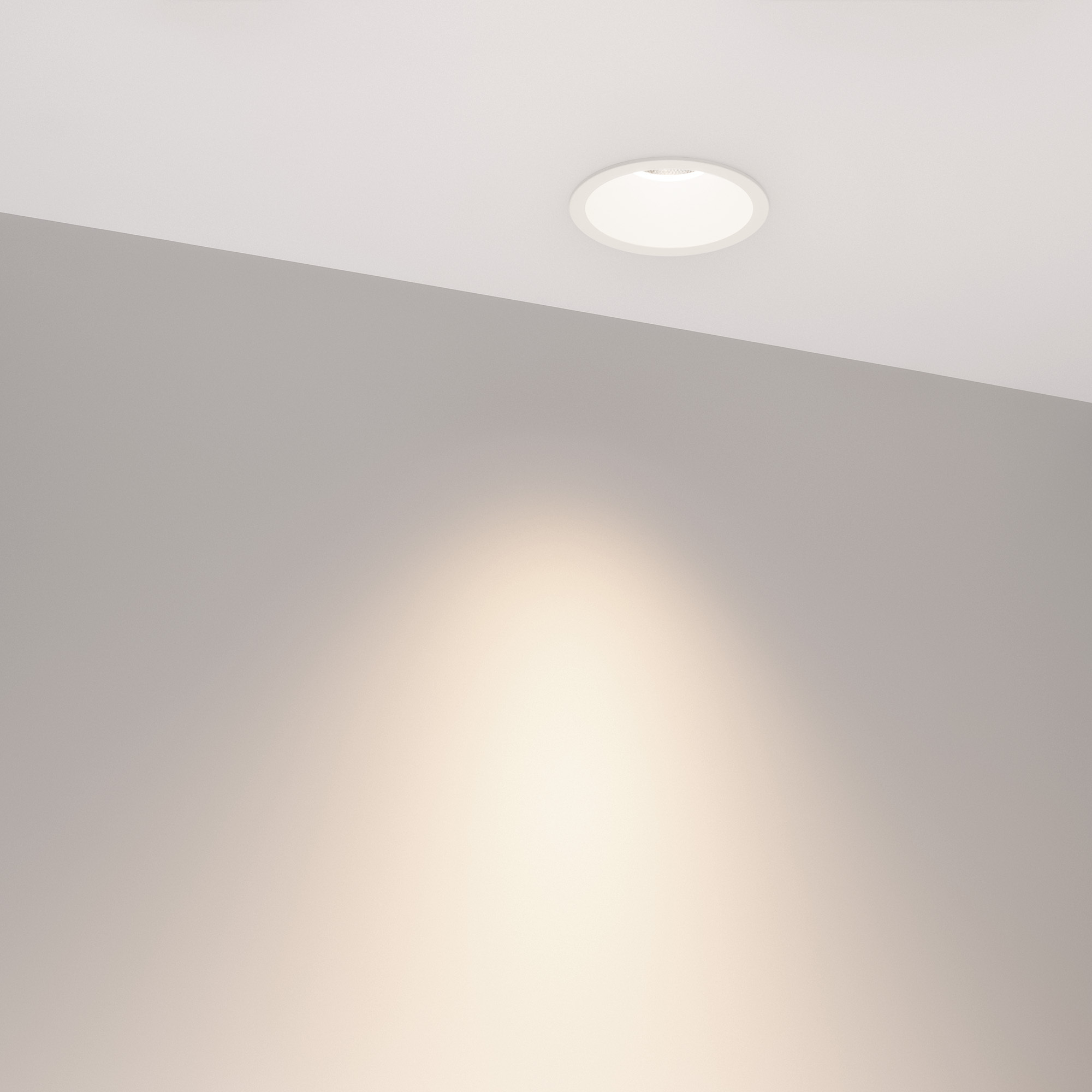 Встраиваемый светильник даунлайт. Мощность 10 Вт, св. поток 980 лм, 98 лм/Вт, дневной 4000 K, CRI>90, угол 24°, напряжение питания 230 В. Белый круглый корпус из алюминия, степень защиты IP20. Размер: диаметр 82 мм, высота 53 мм. Монтаж встраиваемый, установочное отверстие: диаметр 75 мм. UGR<14. Драйвер 30-42 В, 250 мА, пульсация <2%.