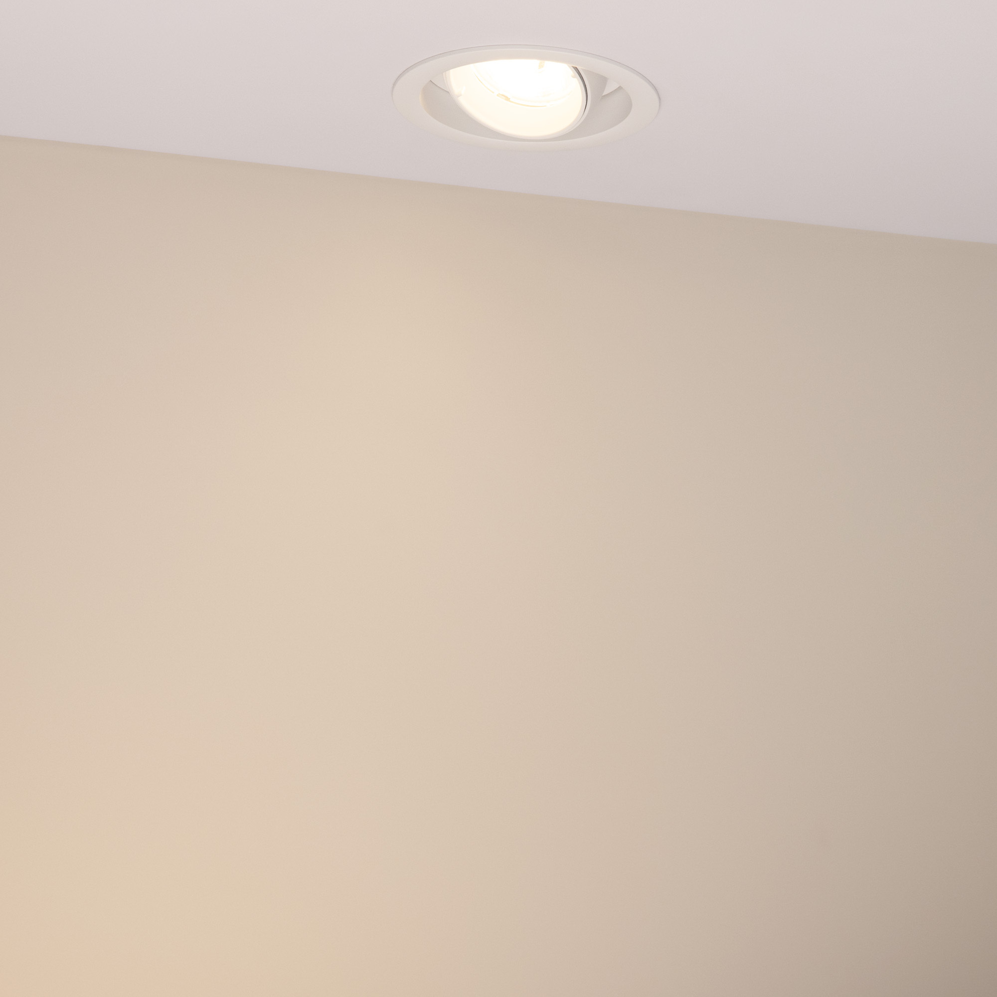 Встраиваемый карданный светильник. Мощность 20 Вт, св. поток 2132 лм, 107 лм/Вт, тёплый 3000 K, CRI>92, угол 40°, напряжение питания 230 В. Белый корпус из алюминия, белая вставка, степень защиты IP20. Размер: диаметр 110 мм, высота 105 мм. Монтаж встраиваемый, установочное отверстие: диаметр 95 мм. Драйвер 24-42 В, 500 мА, пульсация <2%.