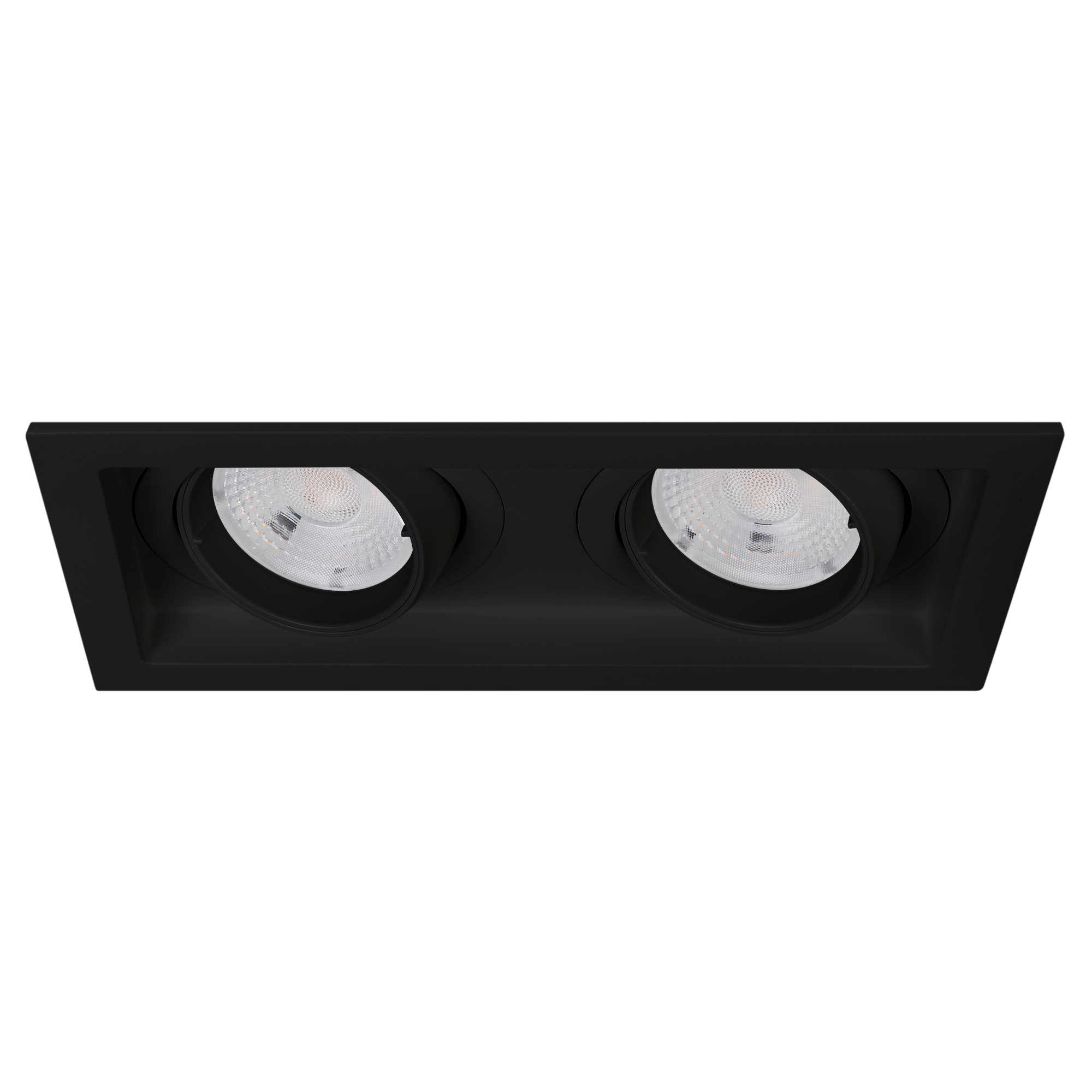 Поставка под заказ от 60 шт. Встраиваемый карданный светильник. Мощность 2х12 Вт, св. поток 2788 лм, 116 лм/Вт, дневной 4000 K, CRI>92, угол 40°, напряжение питания 230 В. Чёрный корпус из алюминия, белая вставка, степень защиты IP20. Размер: длина 170 мм, ширина 90 мм, высота 80 мм. Монтаж встраиваемый, установочное отверстие: длина 155 мм, ширина 75 мм. Драйвер 27-40 В, 300 мА, пульсация <2%.