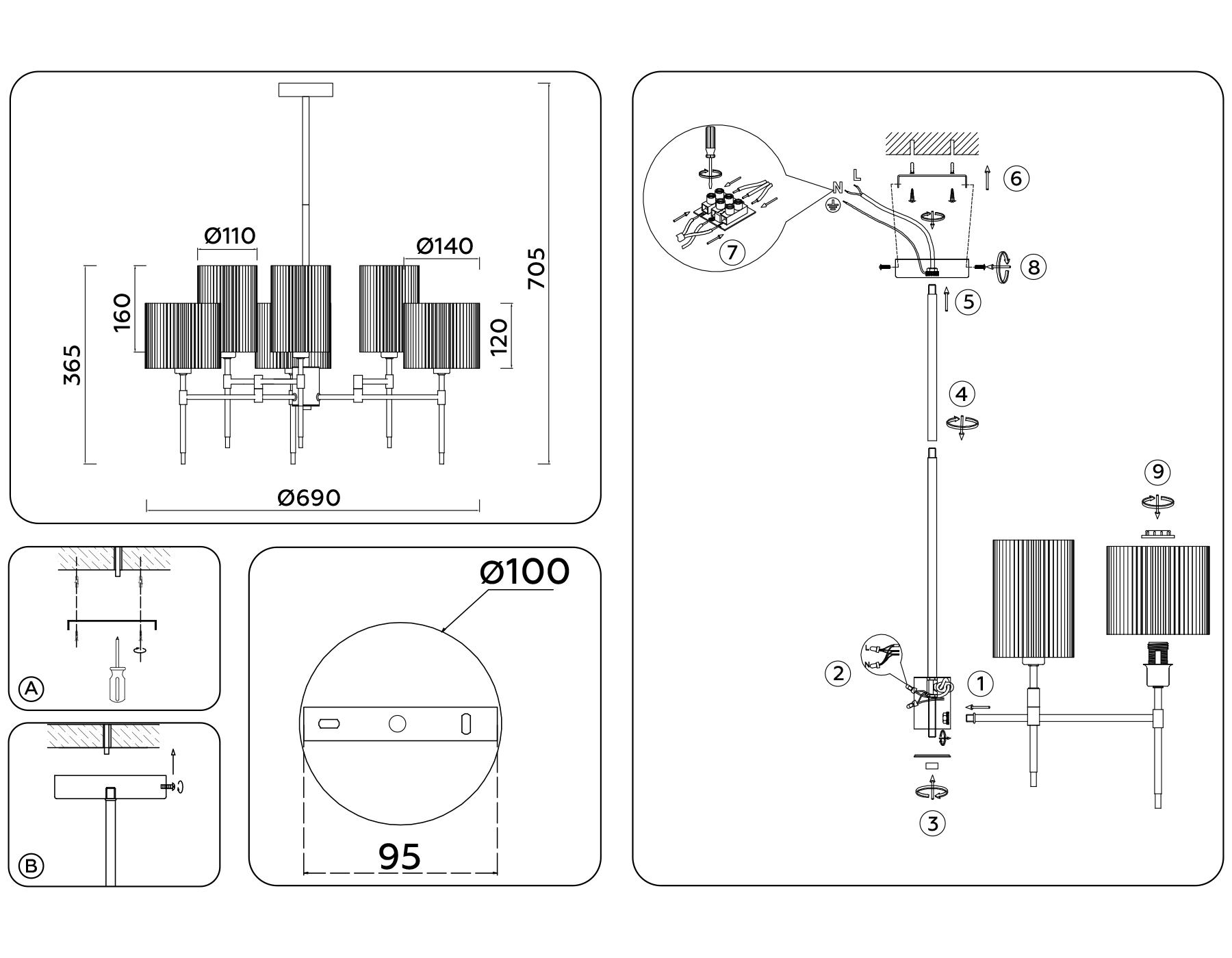 Светильник на штанге LH72381/6 BS/GR латунь/серый E14*6 max 40W D690*705