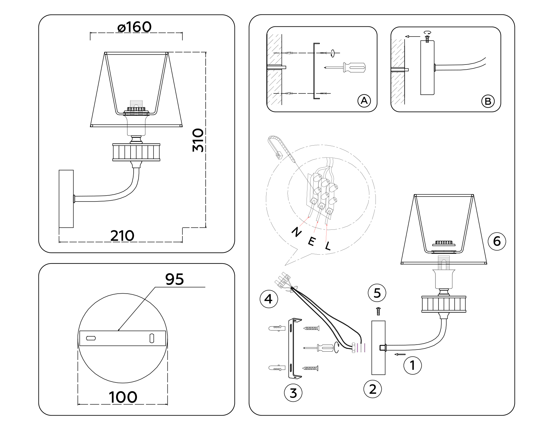 Светильник настенный LH71255 BS/WH латунь/белый E14 max 40W 210*160*310