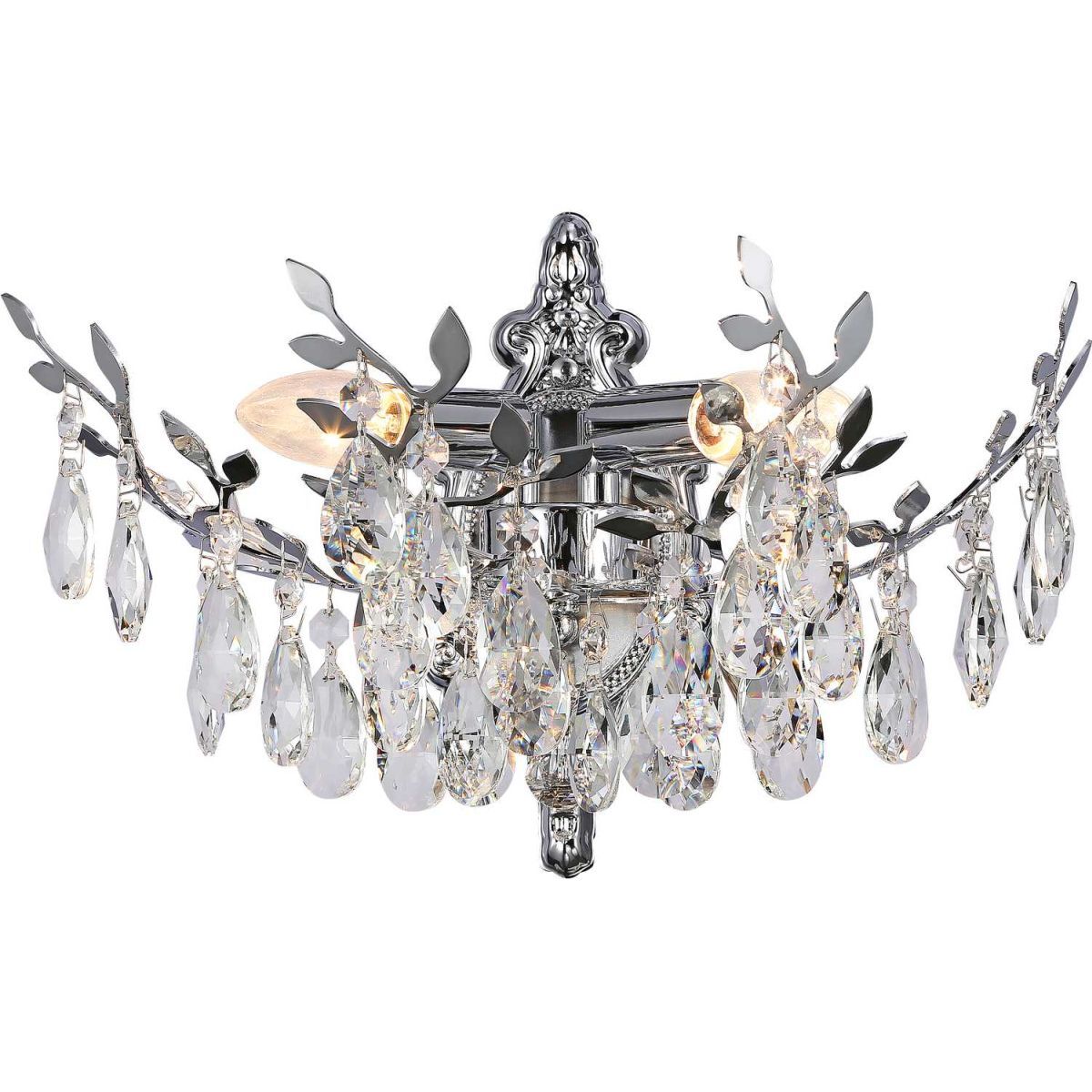 Светильник настенный из коллекции Sofia выполнен из металла, гальванизированного в цвет хрома, и декорирован прозрачным хрусталем высшей категории миндалевидной формы. Хрусталь крепится на декоративные металлические элементы в виде веток и листьев, гальванизированные в цвет арматуры.