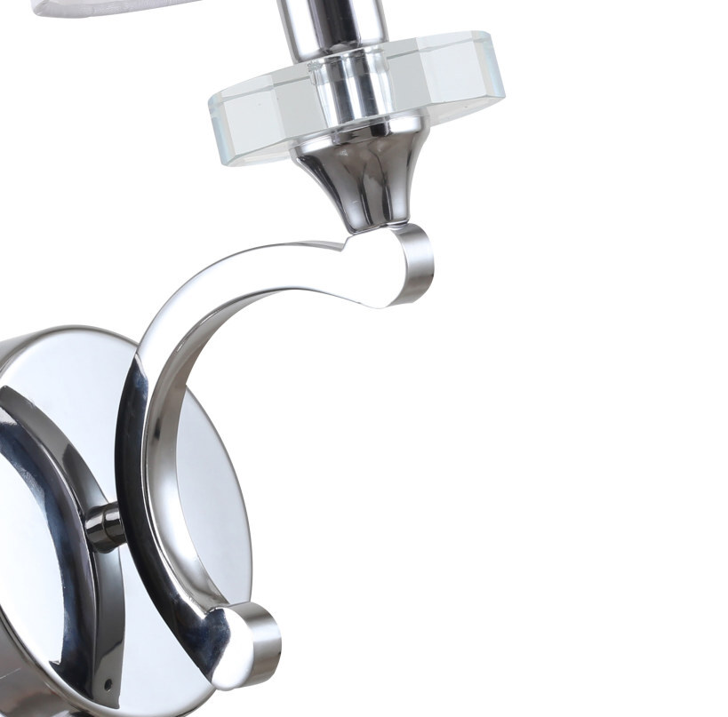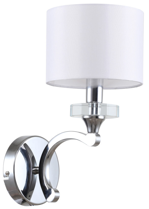 Светильник настенный коллекции Lordi выполнен из металла, гальванизированного в цвет хрома. Декоративная розетка выполнена из прозрачного стекла. Источник света закрыт белым текстильным абажуром с термостойким акрилом внутри.