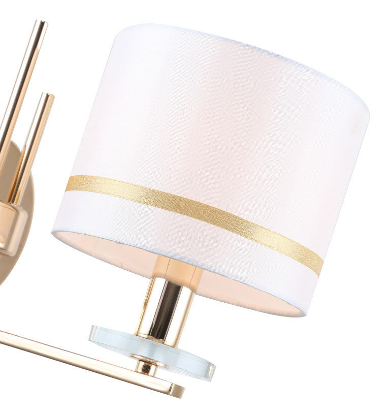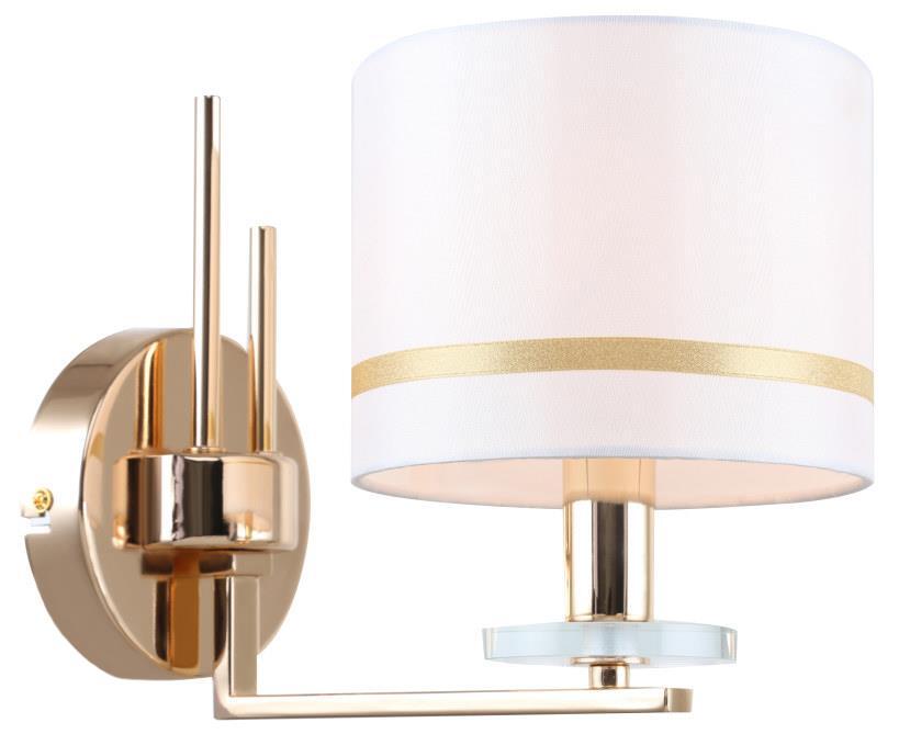 Светильник настенный из коллекции Chart выполнен из металла, гальванизированного в цвет золота, и декорирован железными стержнями в цвет арматуры. Текстильный абажур белого цвета с термостойким акрилом внутри отделан кантом в цвет арматуры. Декоративная розетка выполнена из прозрачного стекла.