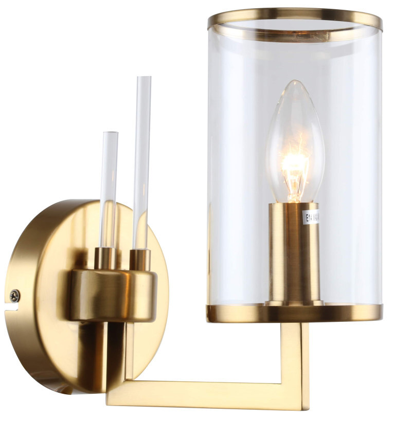 Светильник настенный из коллекции Vase выполнен из металла, гальванизированного в цвет бронзы, и декорирован стеклянными стержнями. Вытянутый прозрачным стеклянным плафоном отделан металлическим кантом, гальванизированным в цвет арматуры.
