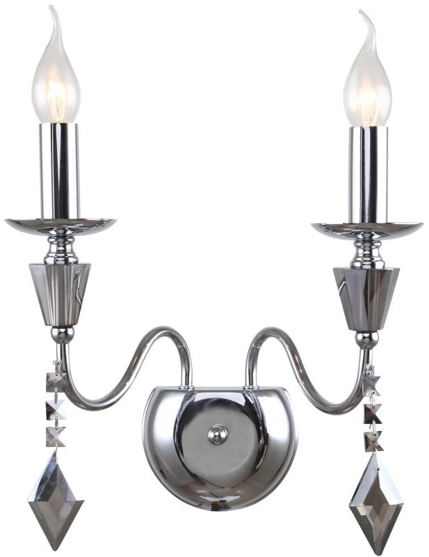 Светильник настенный из коллекции Grace выполнен из металла, гальванизированного в цвет тонированного хрома, и декорирована массивами хрусталя и хрустальными подвесками в форме ромба цвета тонированного хрома. Премиальное качество и неповторимыи? дизаи?н светильников идеально подои?дут как в классические, так и современные интерьеры.