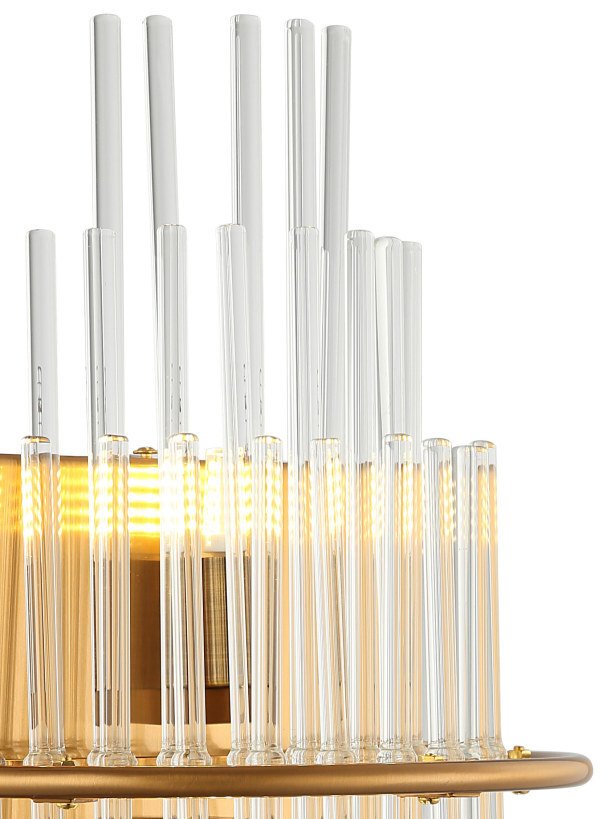 Светильник настенный из коллекции Eclipse выполнен из металла, гальванизированного в цвет бронзы, и декорирована стеклянными трубочками, установленными на прозрачный акрил. Декор окружён кантом из металла, гальванизированного в цвет арматуры. Современная форма и высокое качество светильников идеально подойдут как в классические, так и современные интерьеры.